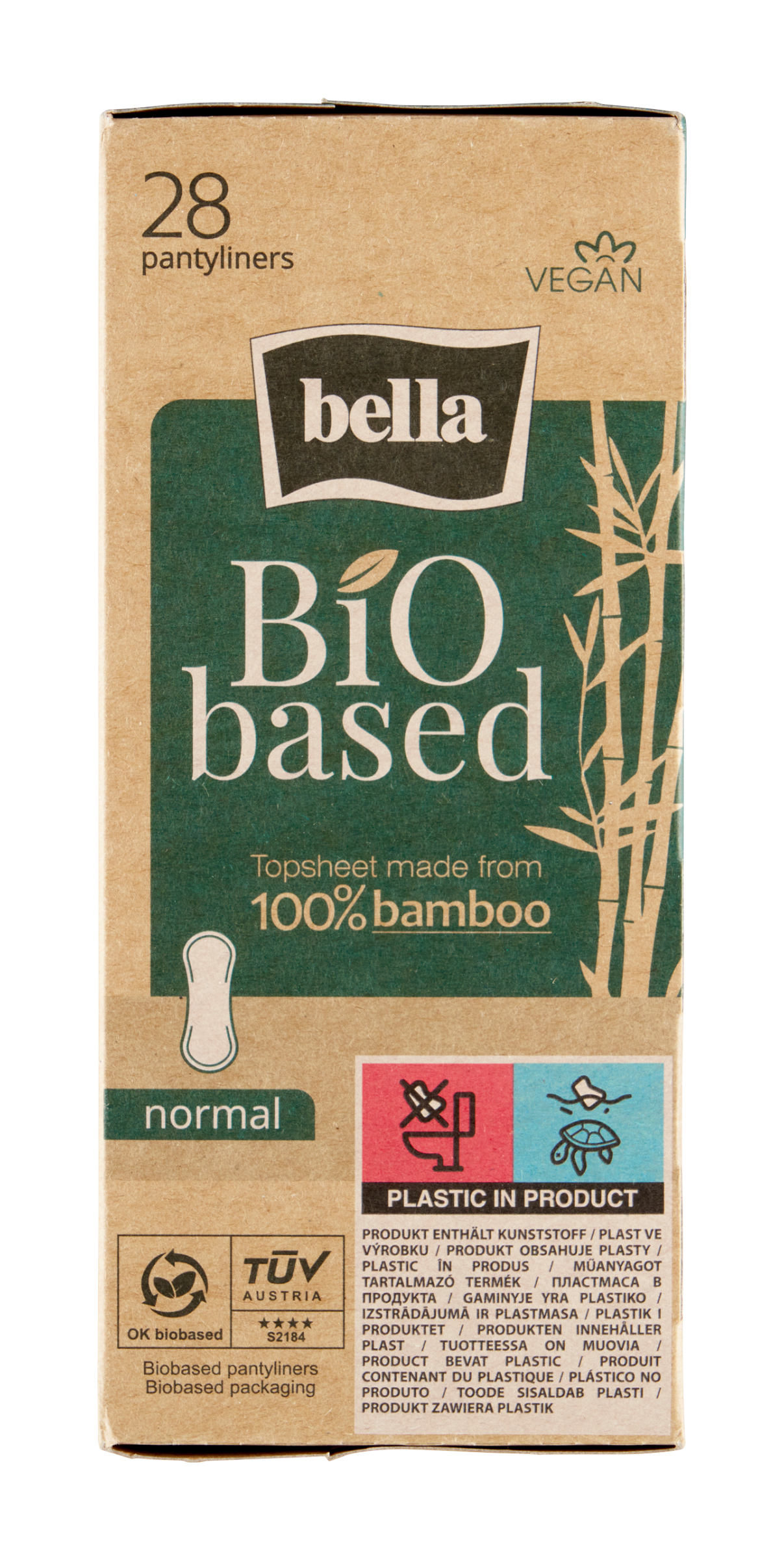 Ultratenké slipové vložky jsou minimálně z 80 % vyrobeny z obnovitelných materiálů přírodního původu. Vrchní vrstva je z bambusu, absorpční jádro obsahuje přírodní vlákna a spodní vrstva je vyrobena z cukrové třtiny.