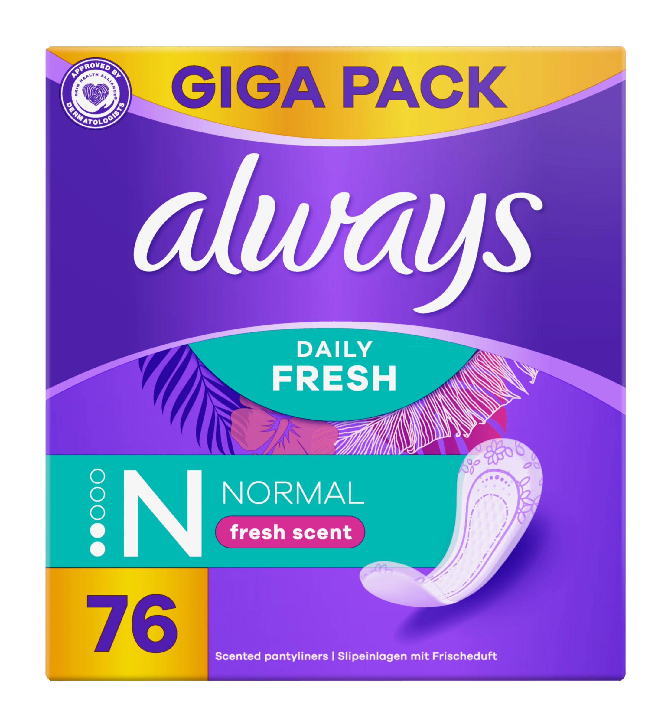 Zůstaňte celý den svěží jako kopretina s intimkami Always Daily Fresh Normal. Díky unikátnímu designu nabízejí skvělou kombinaci komfortu a ochrany, takže se na ně můžete spolehnout každý den, aniž byste je na sobě cítila. Jejich jedinečná technologie neutralizace pachů vás ochrání před nepříjemnými pachy, a navíc vás potěší jejich svěží květinová vůně. Jsou ideální pro poševní výtok, jako zvýšená ochrana při nepravidelné menstruaci a dny s lehkým krvácením nebo pro slabý únik moči.