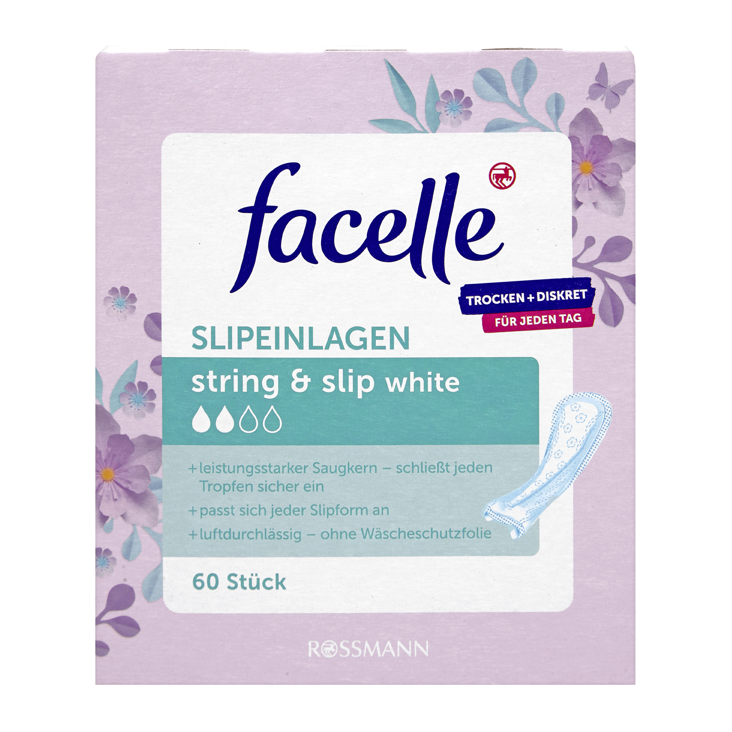 Slipové vložky pro příjemný pocit ochrany během vašich dní. Bezpečné, a přitom diskrétní. Díky svému silnému absorpčnímu jádru uzavřou bezpečně kapalinu a ochrana je navíc podpořena díky přilnavému povrchu, který pevně drží na spodním prádle. Slipové vložky jsou prodyšné a mají zvláště měkký povrch, který je šetrný k pokožce. V bílém provedení. Úzký tvar lze přizpůsobit pro brazilský střih kalhotek nebo tanga.
