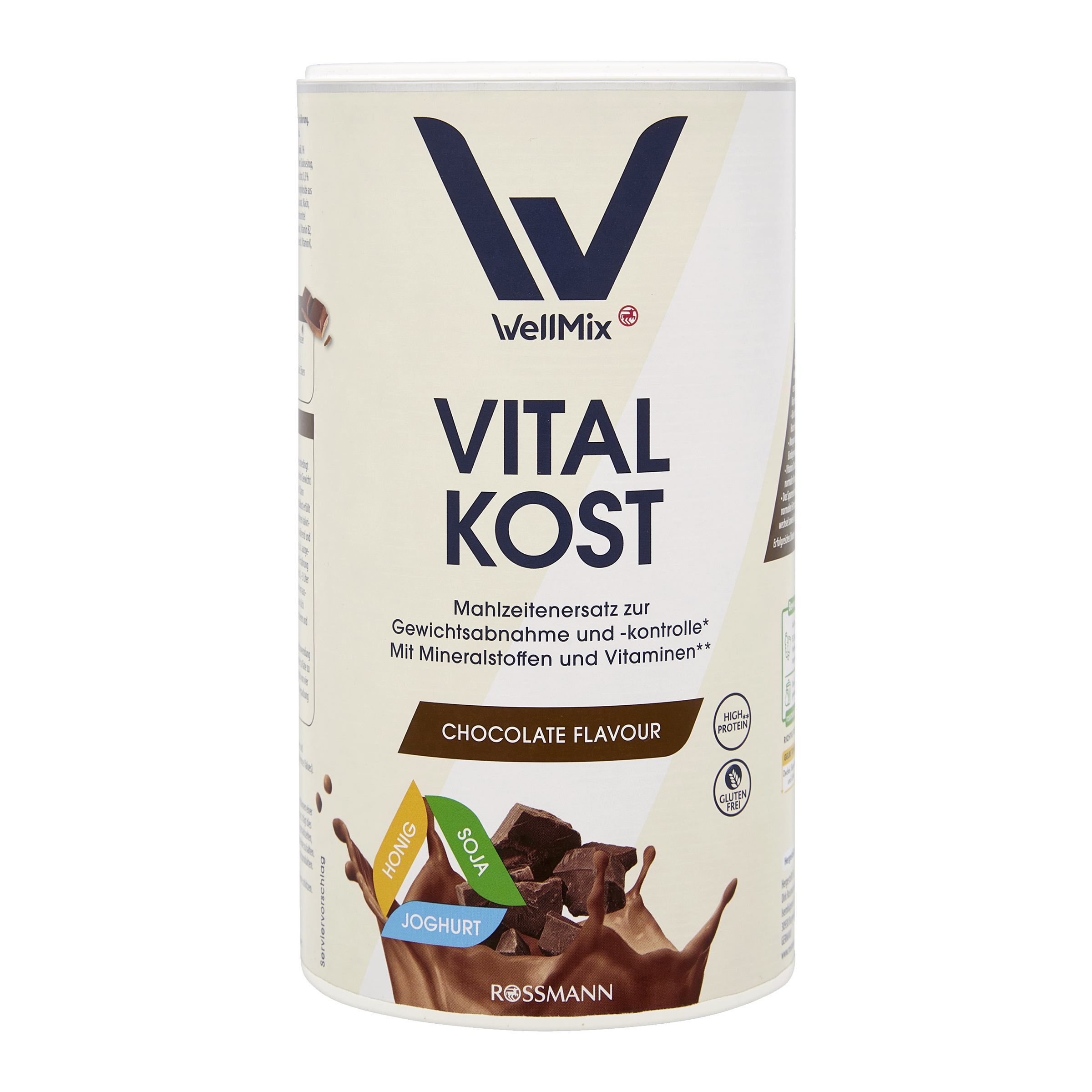 WellMix Vital Shake s čokoládovou příchutí je vaše vyvážené jídlo s bílkovinami ze sóji a mléka, esenciálními aminokyselinami a mnoha pro tělo důležitými živinami: