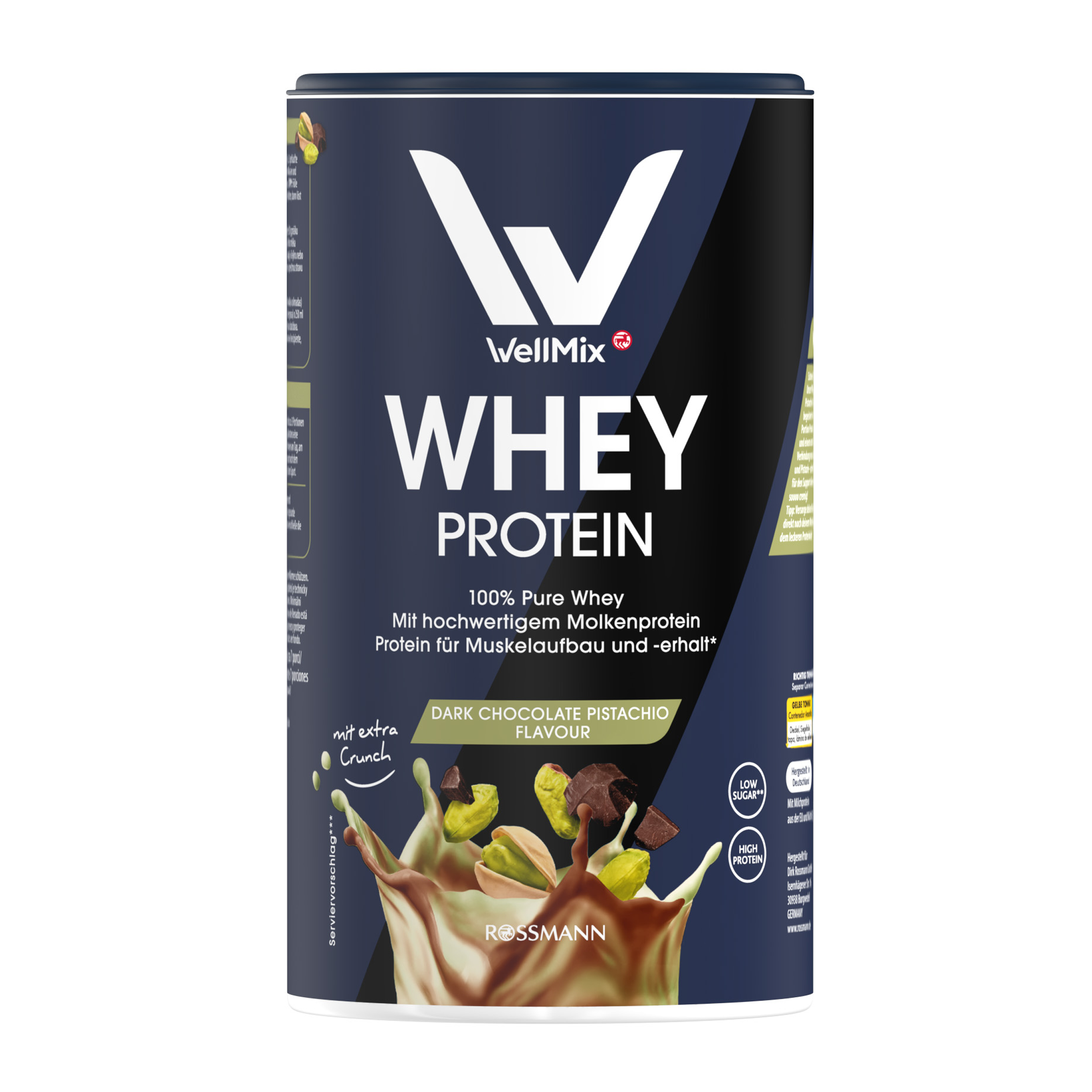 Proteinový nápoj WellMix Whey Protein Dark Chocolate Pistachio Flavour kombinuje 100% syrovátkový protein (whey) s lahodnou příchutí hořké čokolády a pistácie. Každá porce poskytuje až 34 g bílkovin, které podporují růst a udržení svalové hmoty. Díky krémové konzistenci a extra křupavým kouskům (crunch) si vychutnáte každý doušek. Protein se rychle rozpouští a je ideální po tréninku i během dne. Při přípravě s vodou má navíc nízký obsah cukru, takže je skvělou volbou pro efektivní podporu výkonu i regenerace.