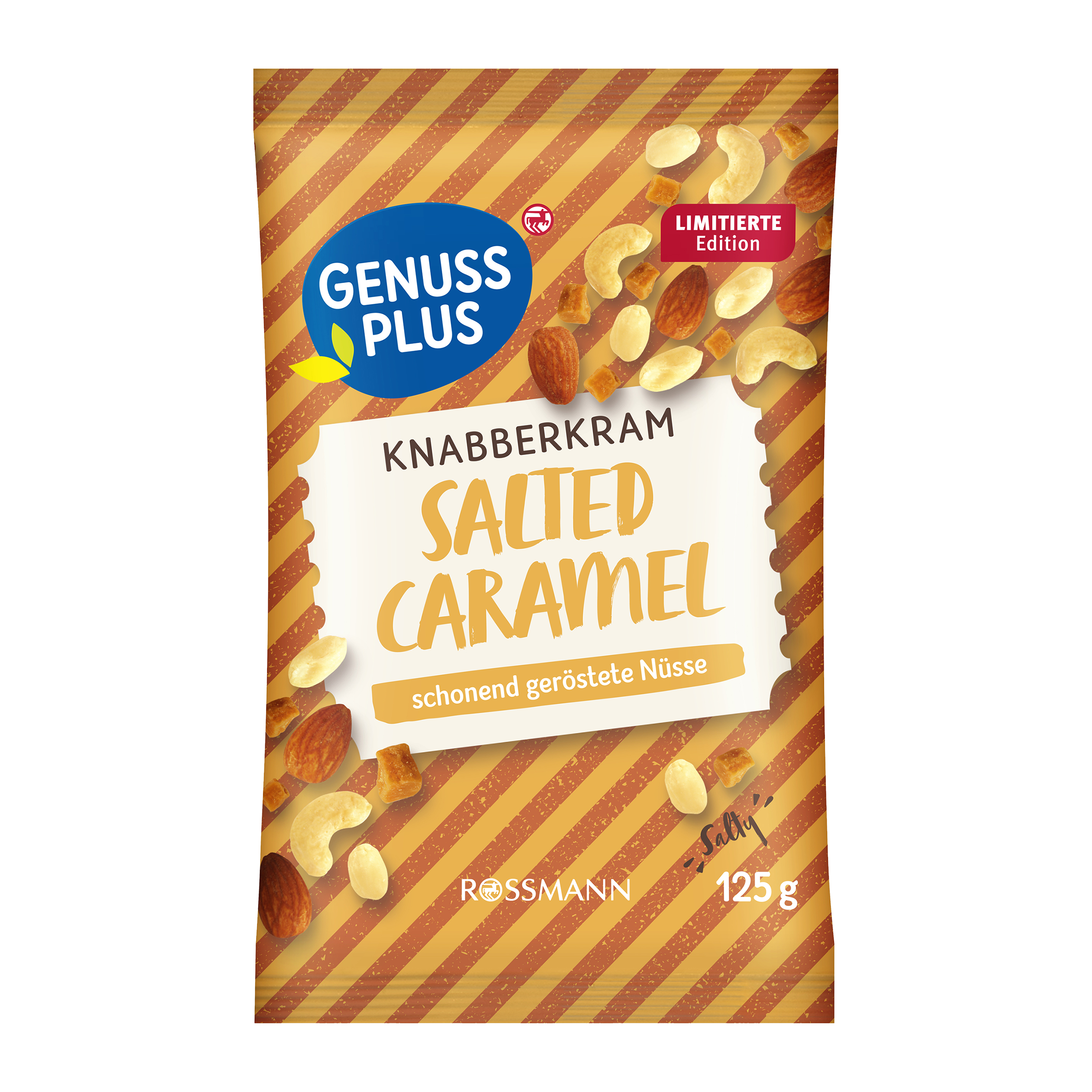 - Směs pražených loupaných arašídů a pražených jader skořápkových plodů se slaným karamelem, baleno v ochranné atmosféře.
