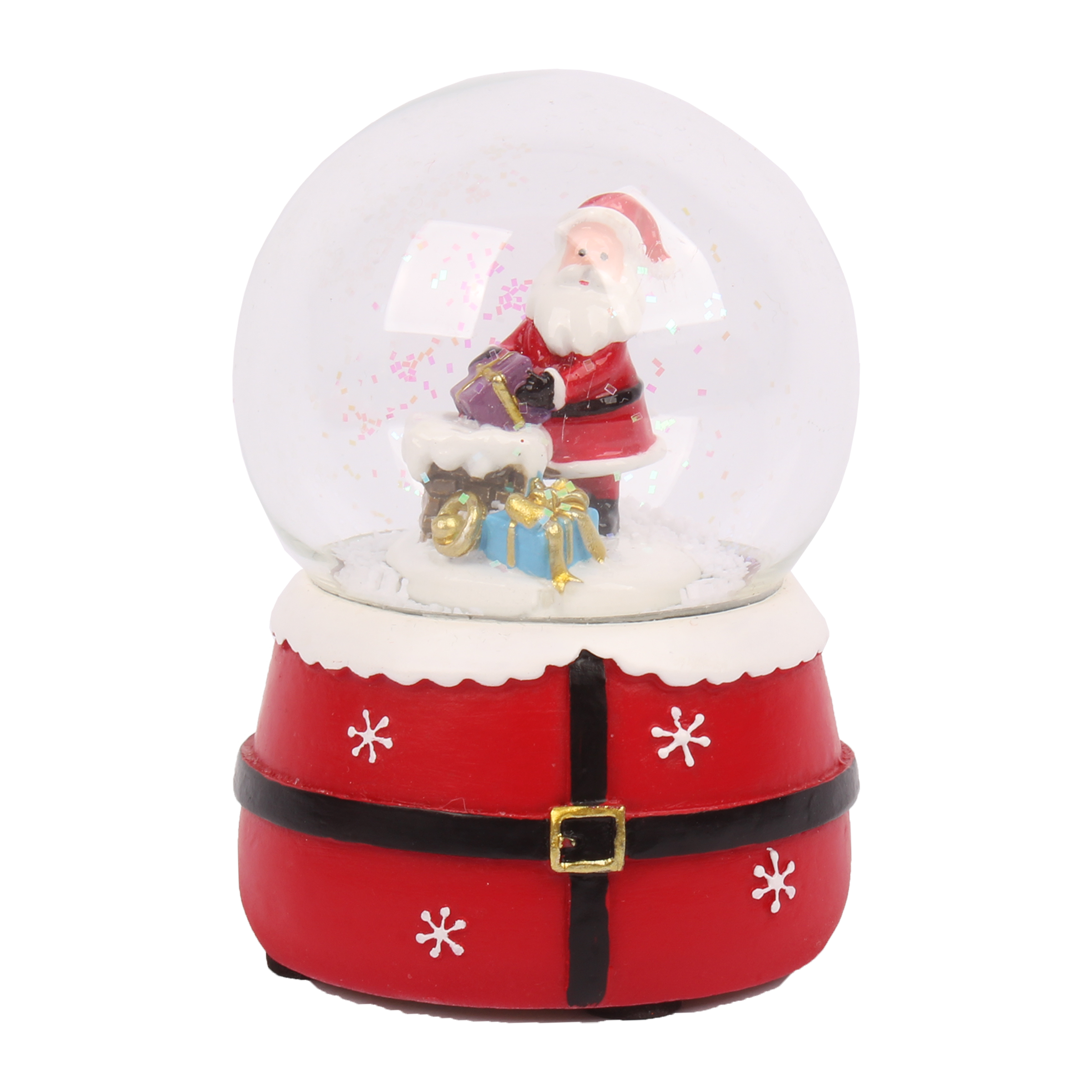 Roztomilá sněhová koule s figurkou Santa Clause uvnitř. Podstavec sněžítka ve stylu Santova obleku s červenou barvou, černým páskem a sněhovými vločkami dodává kouli hravý vzhled. Ideální jako vánoční dekorace nebo milý dárek.