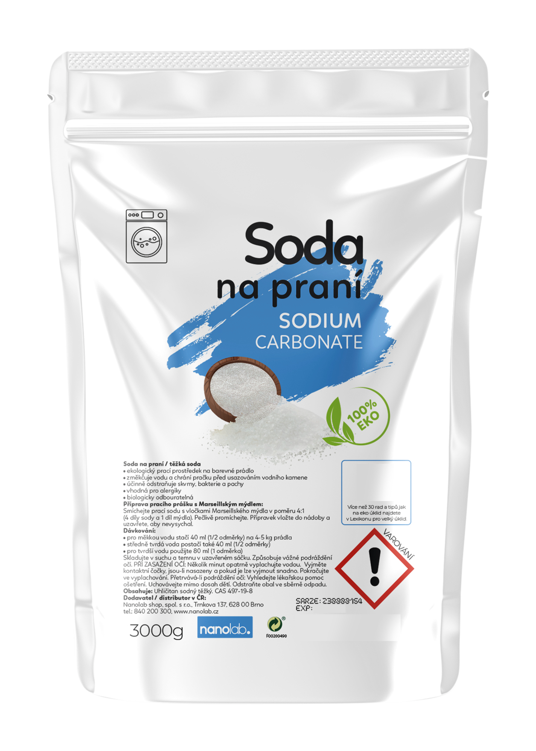 Prací soda je skvělým pomocníkem v domácnosti, který se postará o čisté prádlo. Tento ekologický prací prostředek je vhodný pro barevné i bílé prádlo a díky svým vlastnostem změkčuje vodu, chrání pračku před usazováním vodního kamene, účinně odstraňuje skvrny, bakterie a pachy, je vhodný pro alergiky a navíc je biologicky odbouratelný.