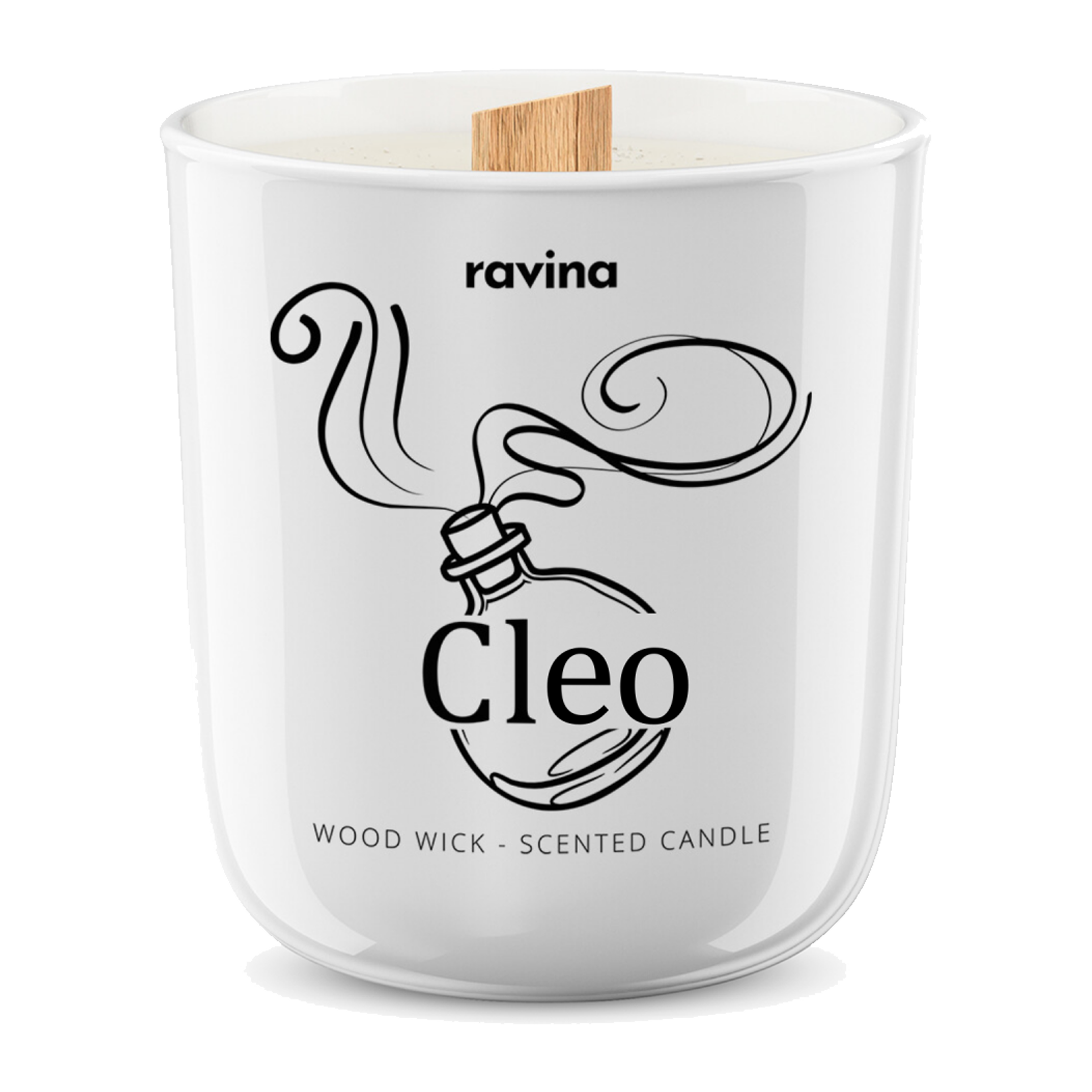 Vonná svíčka Cleo od Ravina je rovněž inspirativní vůní vycházející z vonných tónů parfému Chloe. Po zapálení dřevěného knotu vás čeká krásná, květinová, pudrová a svěží vůně. V úvodním tónu ucítíte pivoňku a frézie podtrhnuté ovocným akcentem oblíbeného liči. Samotné srdce vůně se jemně otevírá konvalinkou, po chvíli je zalité bohatým aroma růží. Nechybí jasná vůně magnólie, která má jantarový základ. Pokud chcete zdůraznit svůj dokonalý smysl pro styl, měli byste bez váhání zvolit tuto sójovou svíčku. Nádherná květinová vůně je romantická, přináší záplavu citů a vzpomínek. Na její výrobu byl použit ekologický, přírodní sójový vosk, který je 100 % ekologický a biologicky odbouratelný.