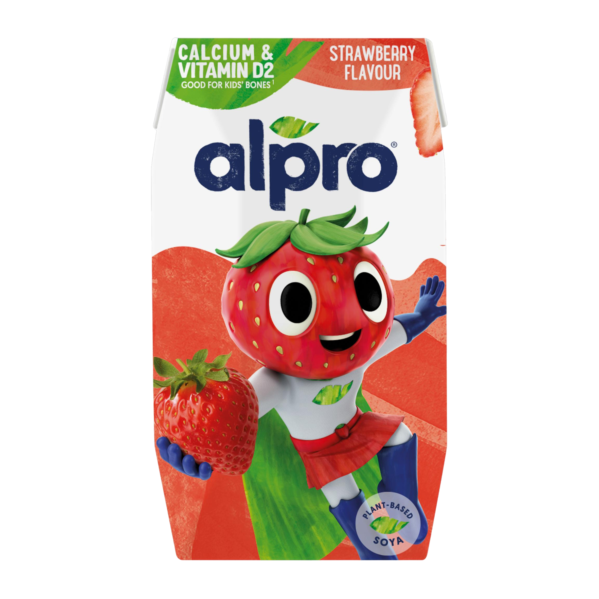 Seznam se s Alpro rostlinným pitíčkem pro děti - v opravdové superhrdinské příchuti šťavnaté jahody! Krémové, mňamózní a připravené zachránit každou snídani nebo svačinku! Každé pitíčko je malý poklad plný důležitých živin, které podpoří malé hrdiny na jejich každodenních dobrodružstvích: vápník a vitamin D pro silné kosti. Jsou také zdrojem vitaminů B2, B12 a jódu. Alpro kids jahodové pitíčko je bez laktózy, 100% rostlinné, obsahuje vitamíny a minerální látky, a navíc skvěle chutná. Jemná textura se šťavnatými jahodami potěší každé dítě a podpoří jejich objevování dobrodružného světa kolem sebe s každým douškem! Alpro. Tak rostlinně. Tak chutně.