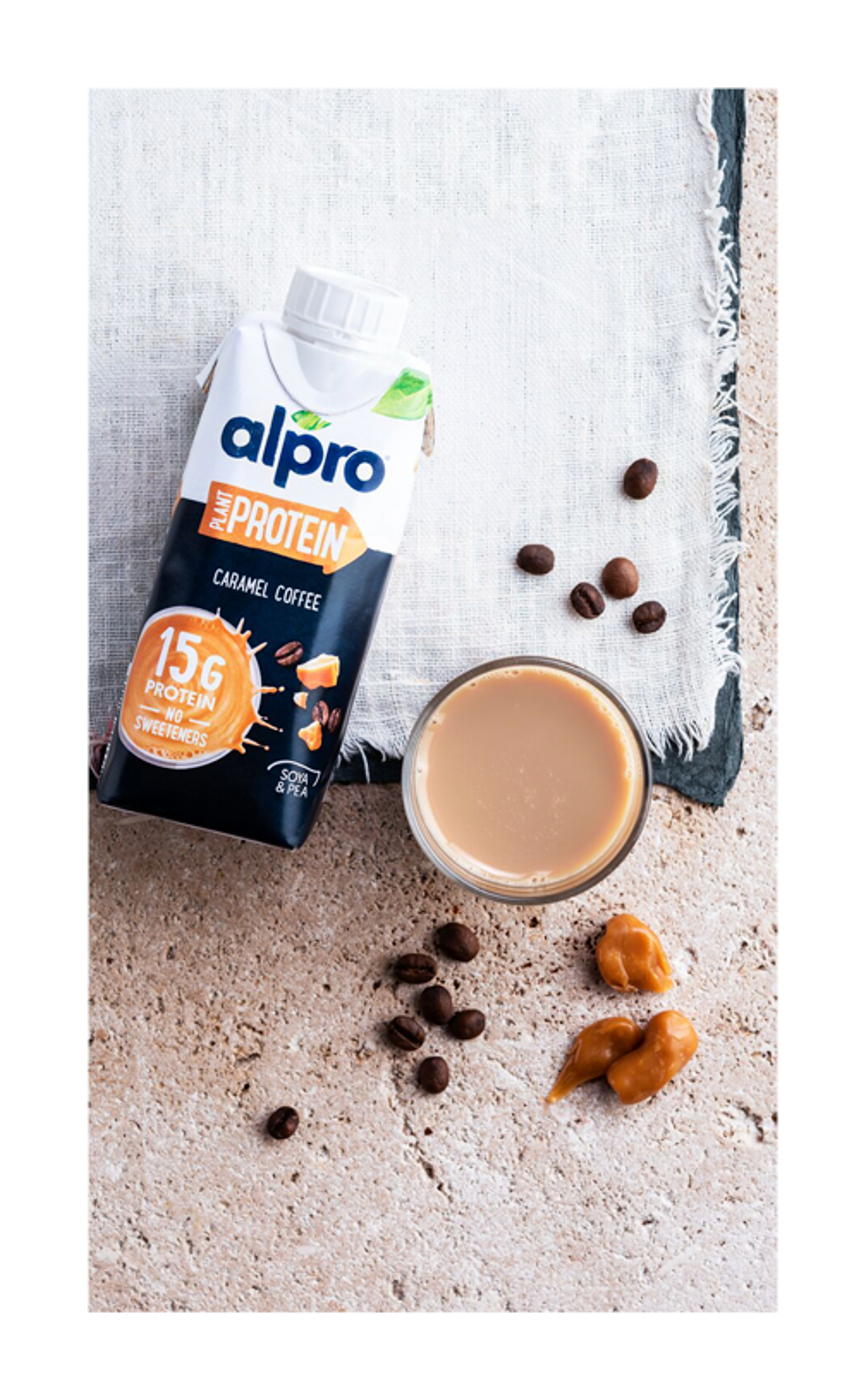 Sójový nápoj s příchutí karamelu a kávy High Protein