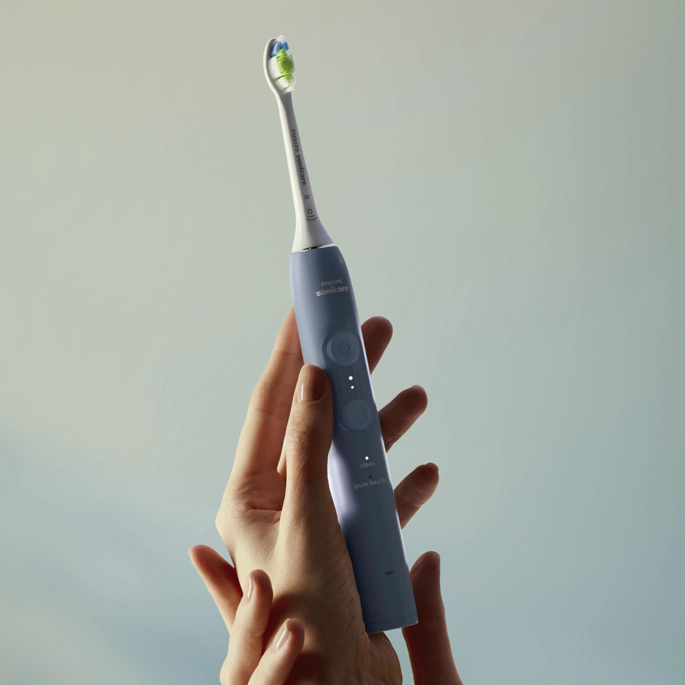 Sonický elektrický zubní kartáček Philips Sonicare 4100 HX4043/48 přináší pokročilé a šetrné čištění s až 5× účinnějším odstraněním plaku oproti manuálnímu kartáčku. Dynamická vlna Sonicare vhání tekutinu mezi zuby a podél linie dásní pro důkladné každodenní čištění.