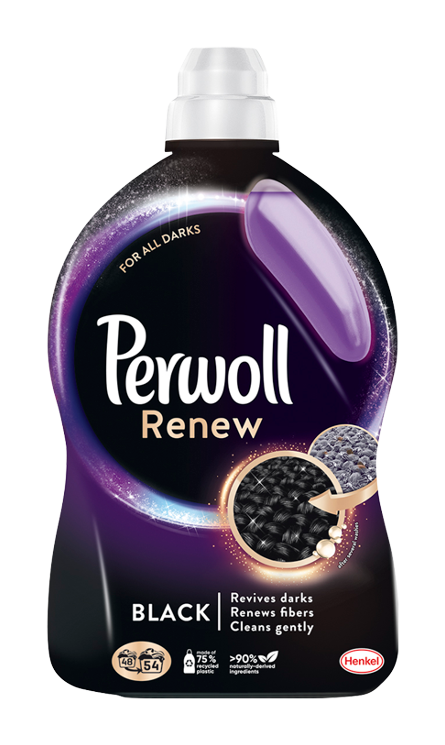 - Péče o barvy - Perwoll Renew je ideálním tekutým pracím prostředkem pro tmavé oblečení — poskytuje nejen šetrné praní, ale také oživuje tmavé barvy!