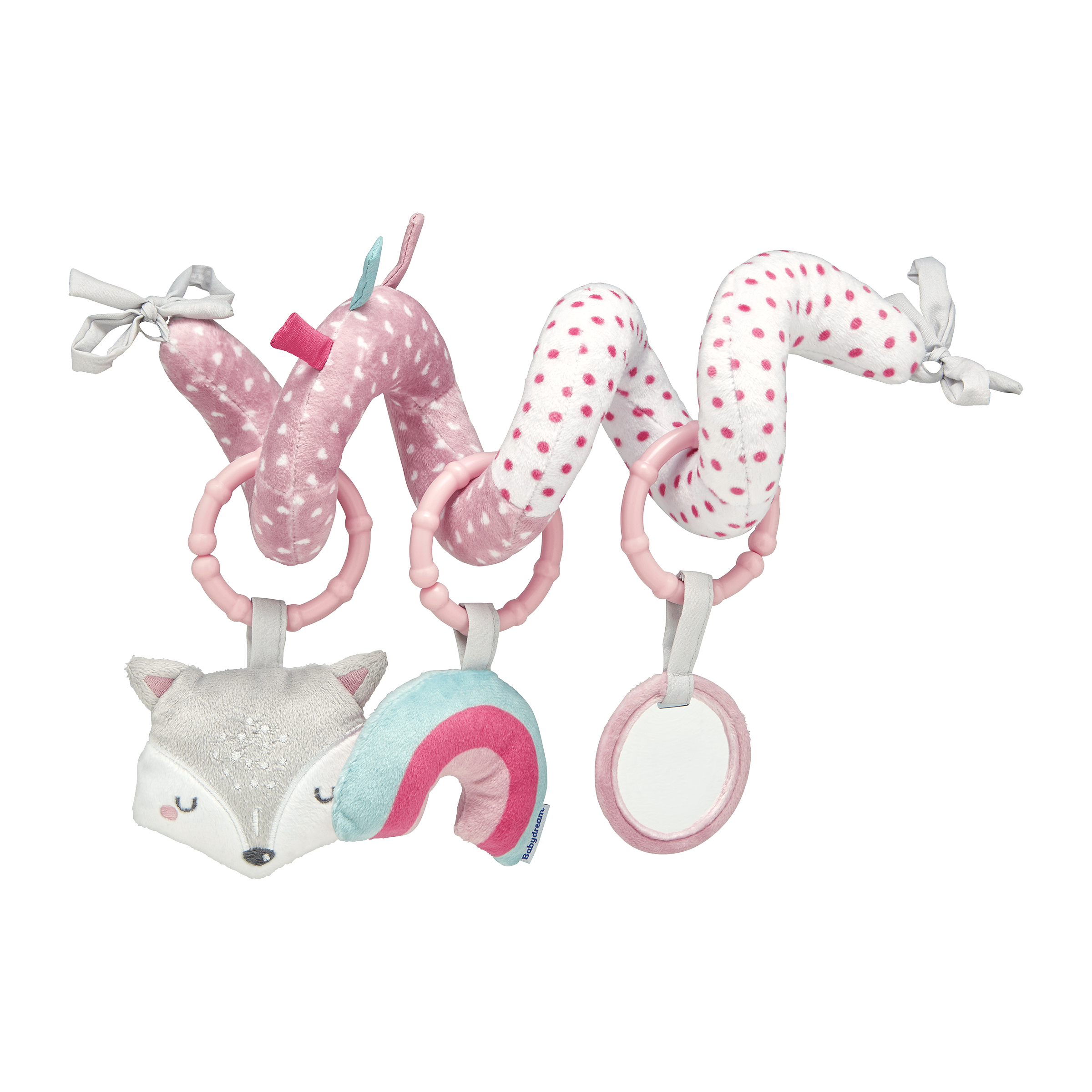 Aktivní spirála. Pro snadné upevnění na dětskou autosedačku, sportovní kočárek nebo dětskou postýlku.