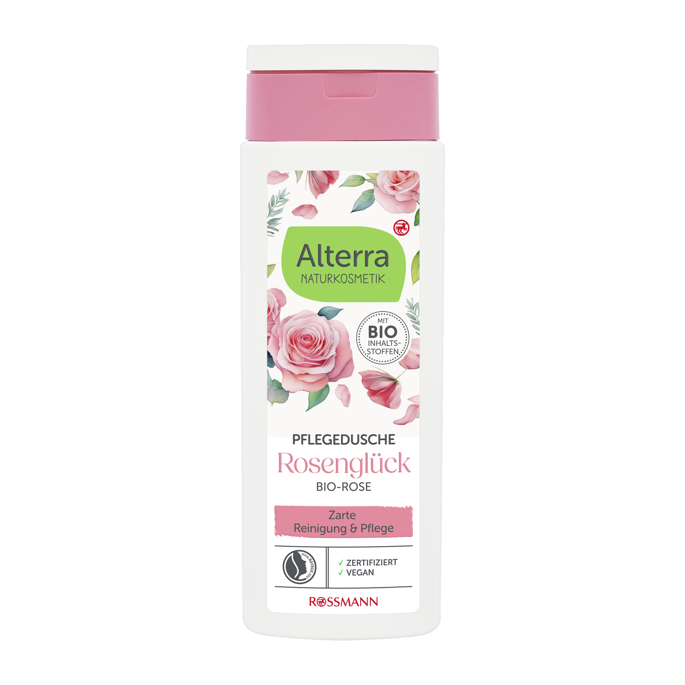 Jemně vonící sprchový gel Alterra Rosenglück s výtažky z bio růžových lístků a bio květů chrpy jemně čistí pokožku a zanechává ji příjemně svěží. Hydratační a pH neutrální složení s glycerinem je obzvláště pečující a dodává pokožce hydrataci.