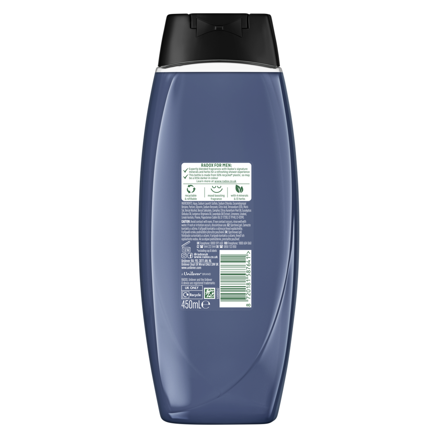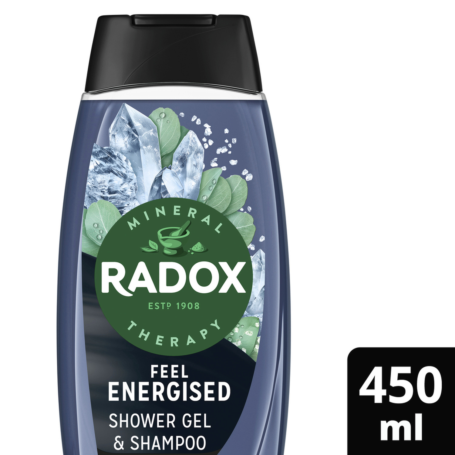 RADOX Feel Energised 2-v-1 sprchový gel a šampon pro muže přináší chladivý sprchový zážitek, který probudí vaše smysly. Obsahuje jedinečnou směs mořských minerálů a bylin, které se aktivují horkou vodou a pomáhají důkladně očistit a ochladit pokožku. Je obohacený o vůni eukalyptu, která povzbudí vaši náladu. Je pH neutrální, vhodný pro každodenní použití a všechny typy pokožky.