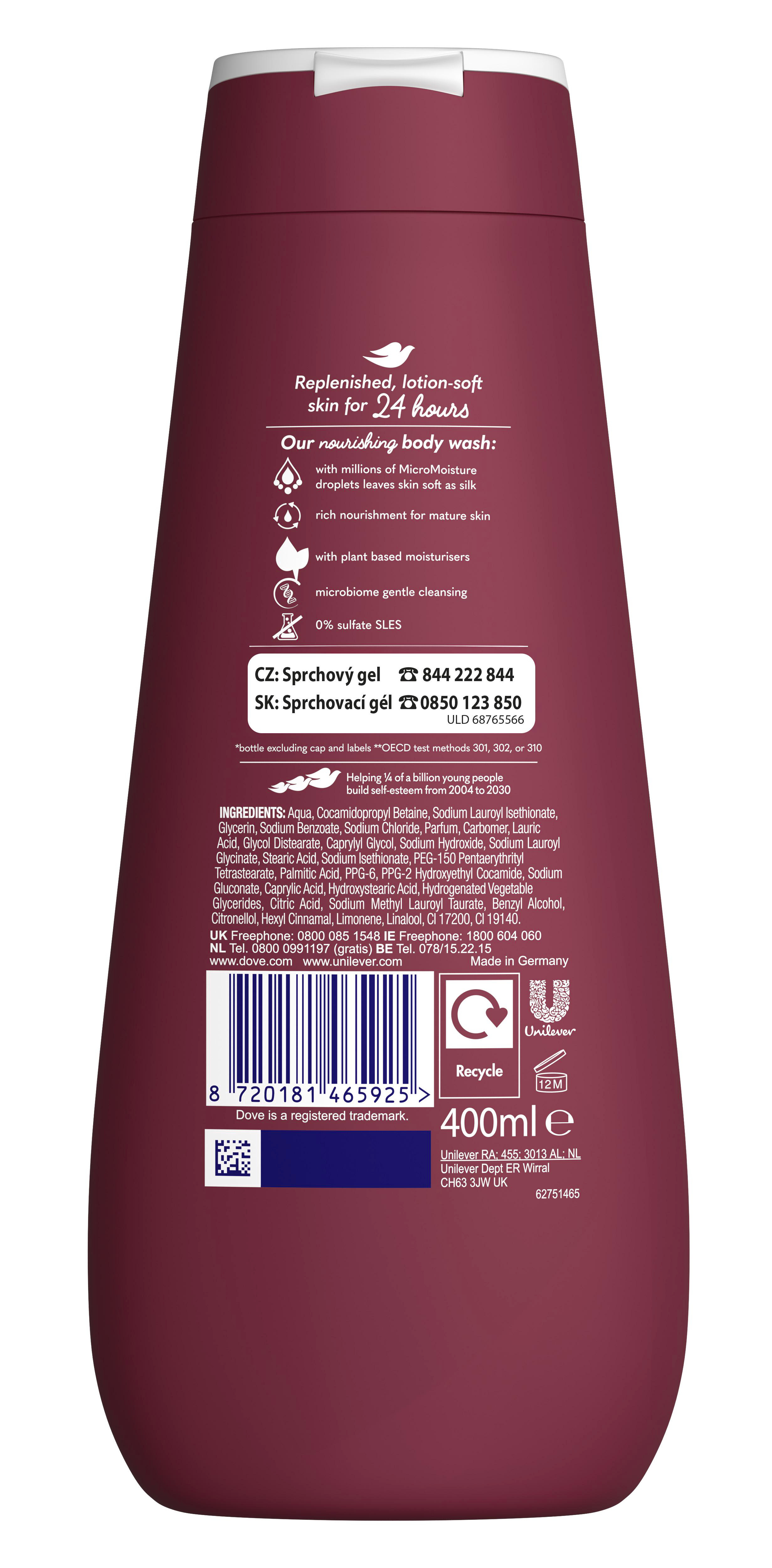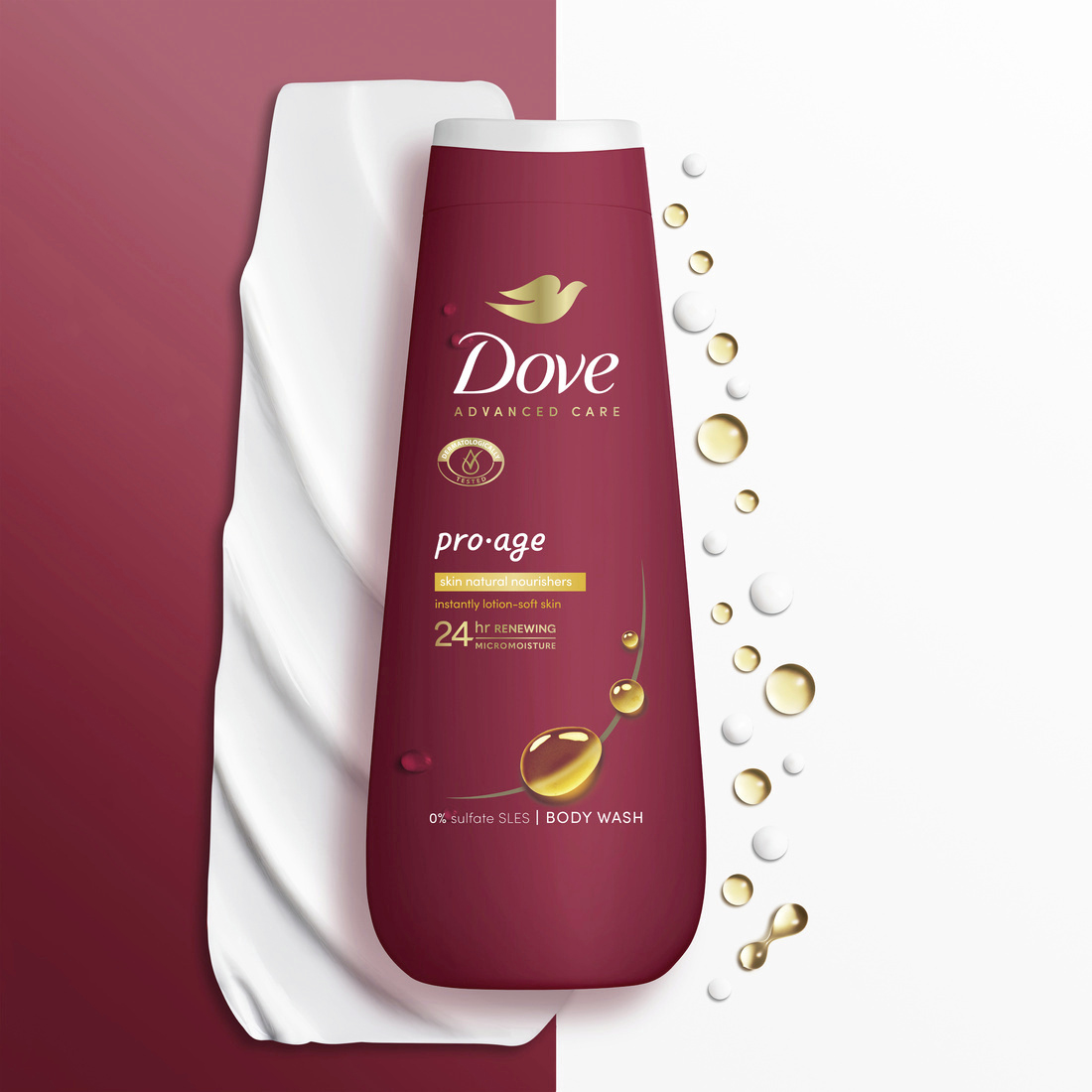 - Sprchový gel Dove Pro Age byl vyvinut tak, aby pečoval o zralou pokožku