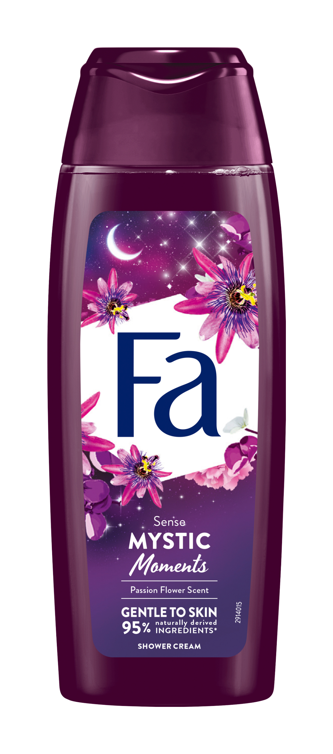 "ODVAŽ SE OBJEVOVAT S FA! Osvěžte své tělo a mysl se sprchovým krémem Fa Mystic Moments s inspirativní vůní mučenky. LEPŠÍ PRO VÁS I PLANETU.