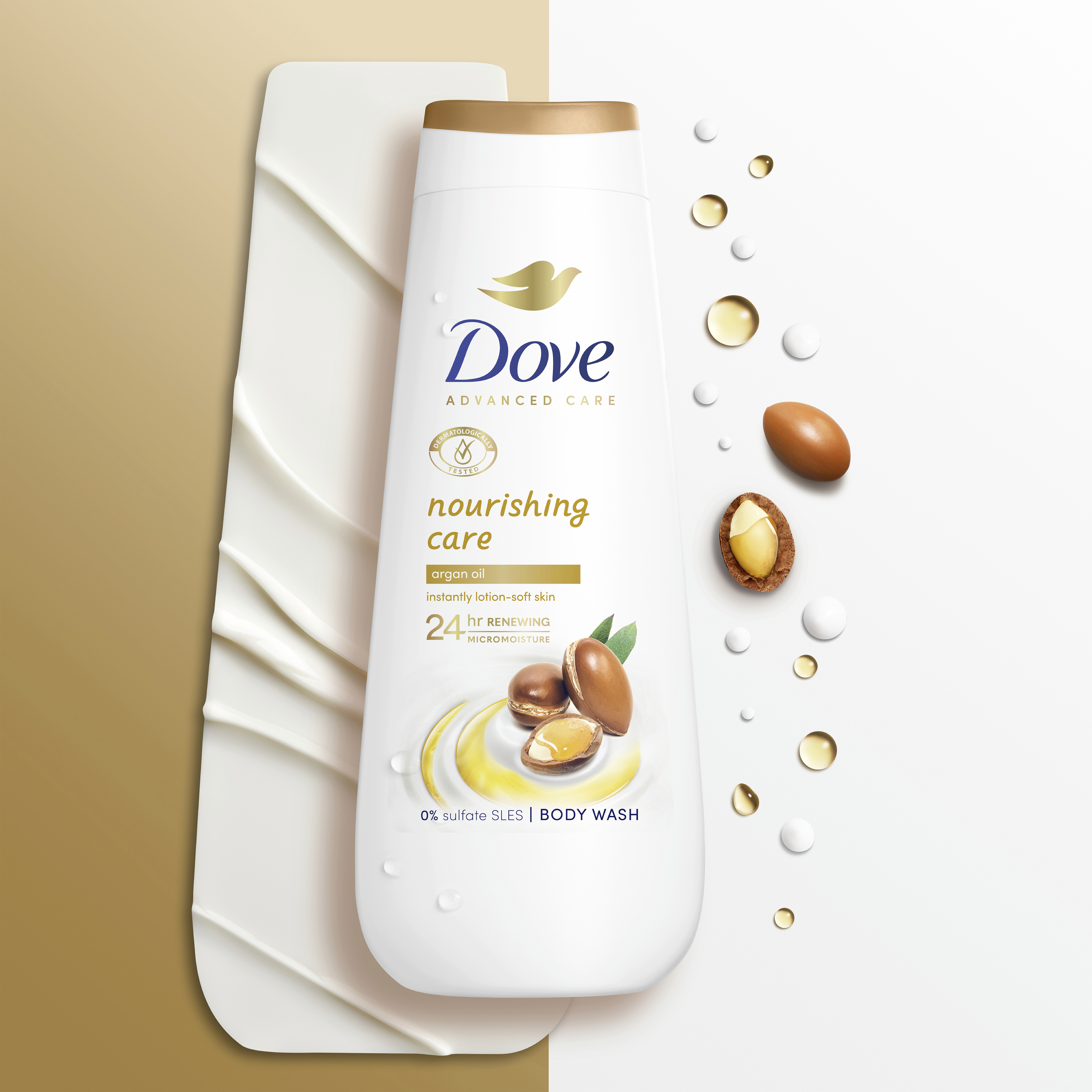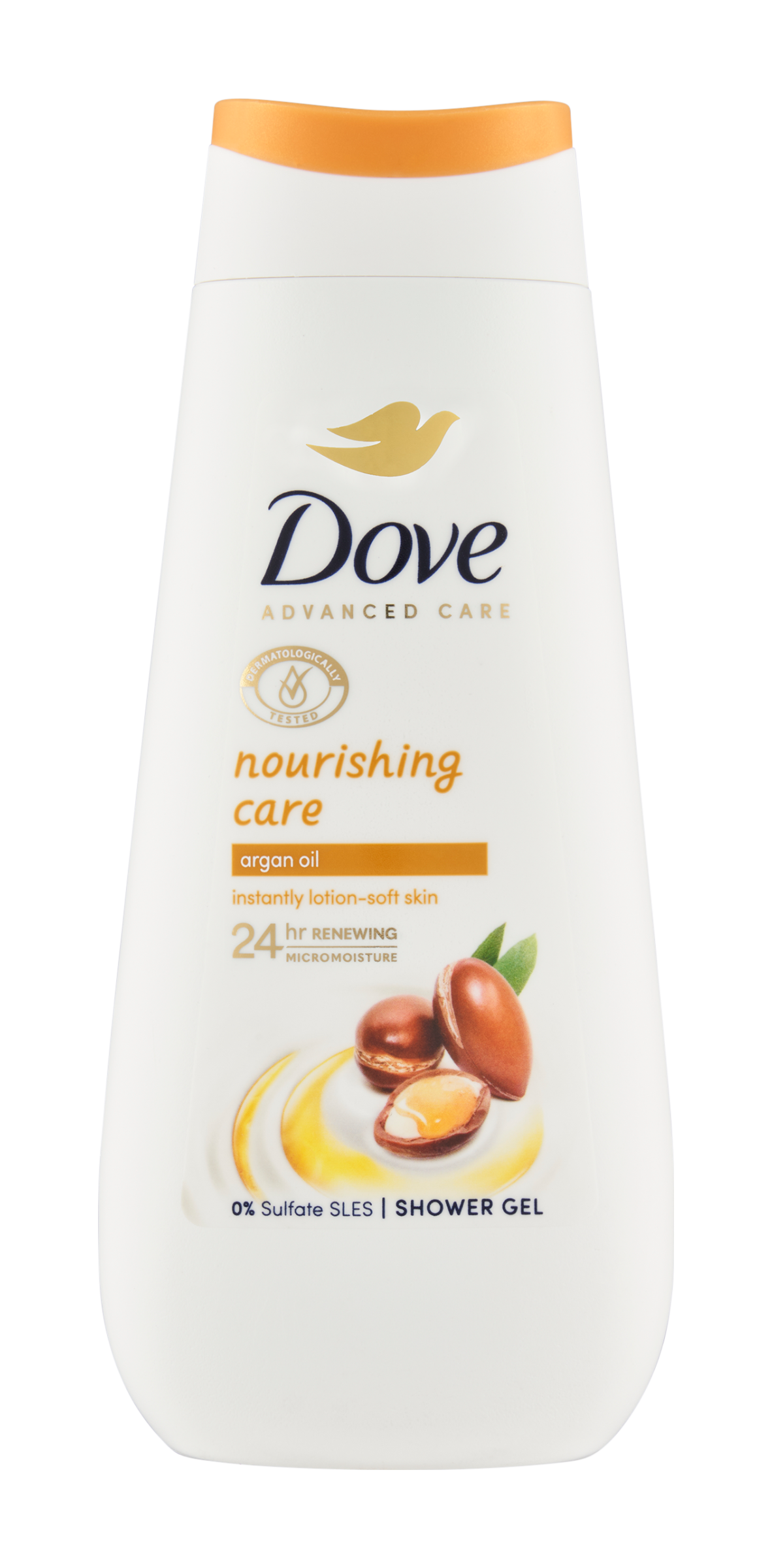 Dove Advanced Care jsou revoluční sprchové gely pro jemnou a hydratovanou pokožku jako po použití tělového mléka na celých 24 hodin. Každá pokožka je jiná - proto se nedostatečná hydratace projevuje u každého jinak. Od mírné, občasně suché pokožky způsobené výkyvy počasí, až po závažnější suchost s podrážděnými místy. Pečujte o hydrataci suché pokožky už ve sprše s novými krémovými sprchovými gely Dove. Nová řada sprchových gelů Dove Advanced Care má extra výživné složení pro okamžitě hydratovanou pokožku. Je obohacena o novou patentovanou technologií 24h Renewing MicroMoisture, která rozkládá olejové kapky na miliony mikrokapek pro lepší výživu pokožky. Výsledkem je vyživená a zdravě vypadající pokožka po celý den. Získejte pocit hydratované pokožky jako po použití tělového mléka. Díky kombinaci vyživujícího složení s řadou nádherných vůní, sprchové gely Dove Advanced Care změní váš přístup ke každodenní sprše. Klasická vůně arganového oleje. Výživné a zklidňující složení pro velmi suchou a podrážděnou pokožku.