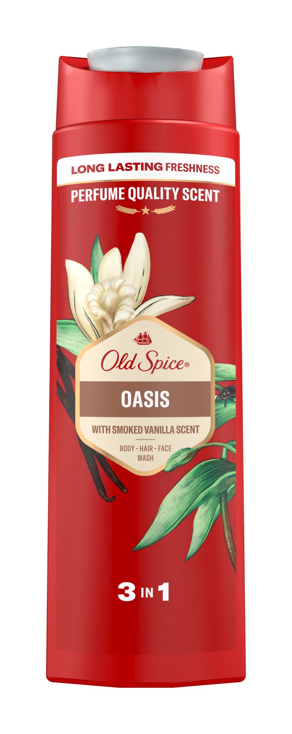 - Vyzkoušej Old Spice Oasis a jeho vůni parfémové kvality vydej se na cestu do ráje! Vůně s gurmánským nádechem kouřově sladké vanilky a bohaté směsi jantaru s ovocnými tóny a ostružinou vytváří vůni, která ti připomene dovolenou