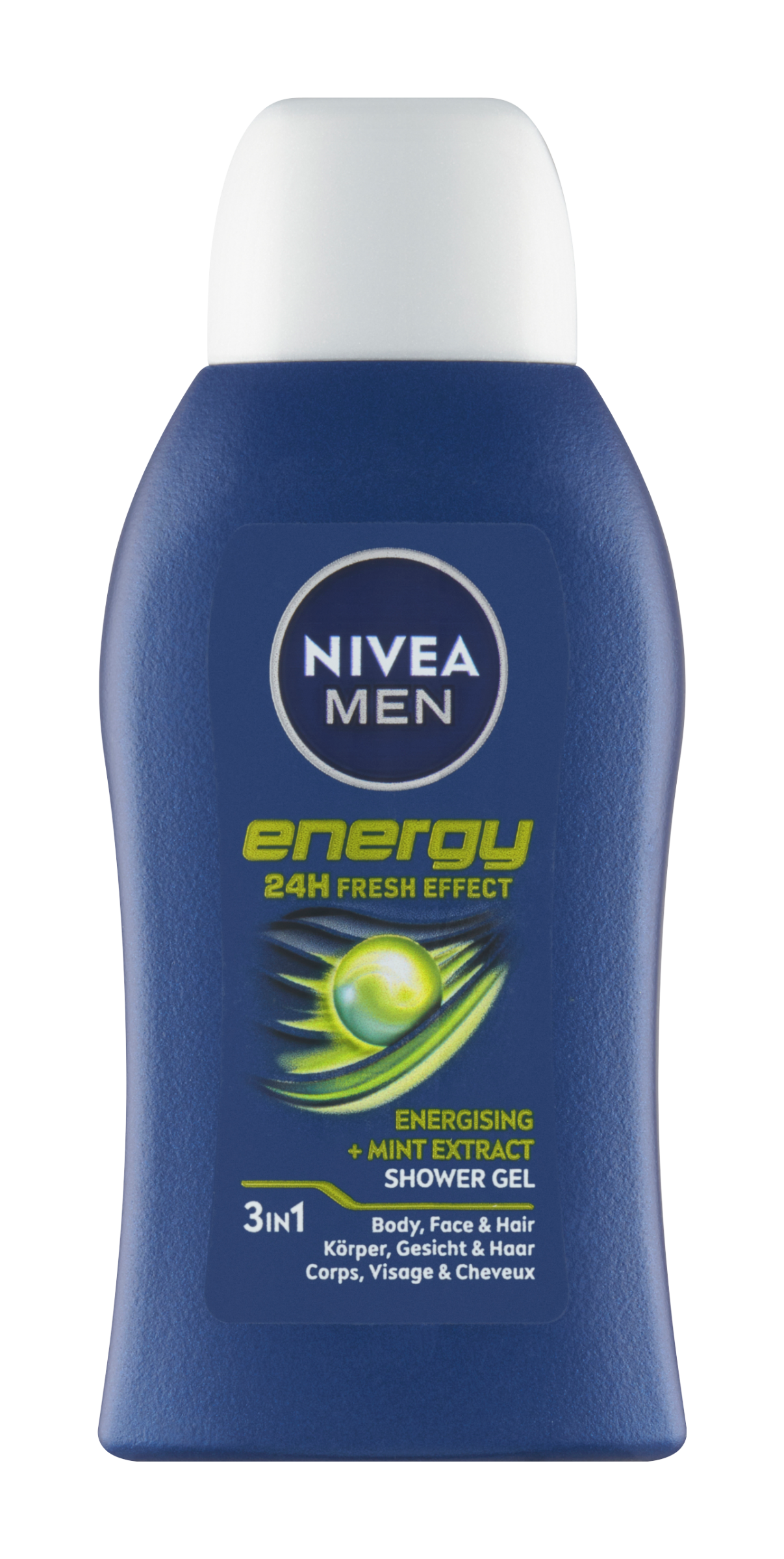 Vychutnejte si dokonalé osvěžení díky výtažku z máty a probuďte k životu svou pokožku i po opravdu vyčerpávajícím dni. Malé cestovní balení je vhodné do letadla i do posilovny. Dopřejte si příval energie po každém sprchování a zapomeňte na pocity únavy a ospalosti. Vsaďte na propracované složení s příjemnou povzbuzující vůní. Dopřejte si účinnou péči pro muže – na tělo, tvář i vlasy: NIVEA MEN Sprchový gel pro muže 3 v 1 Energy.