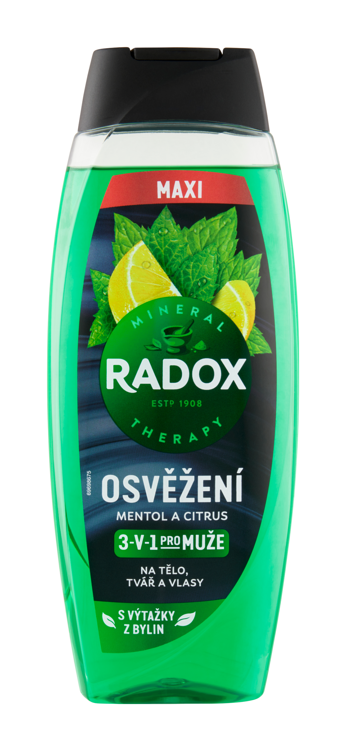 Radox Osvěžení 3v1 pánský sprchový gel na tělo, tvář a vlasy s výtažky z bylin. Nechte se překvapit stimulující vůní mentolu a svěžího citrusu. Užijte si čerstvý příval síly a pocit nepřekonatelnosti.