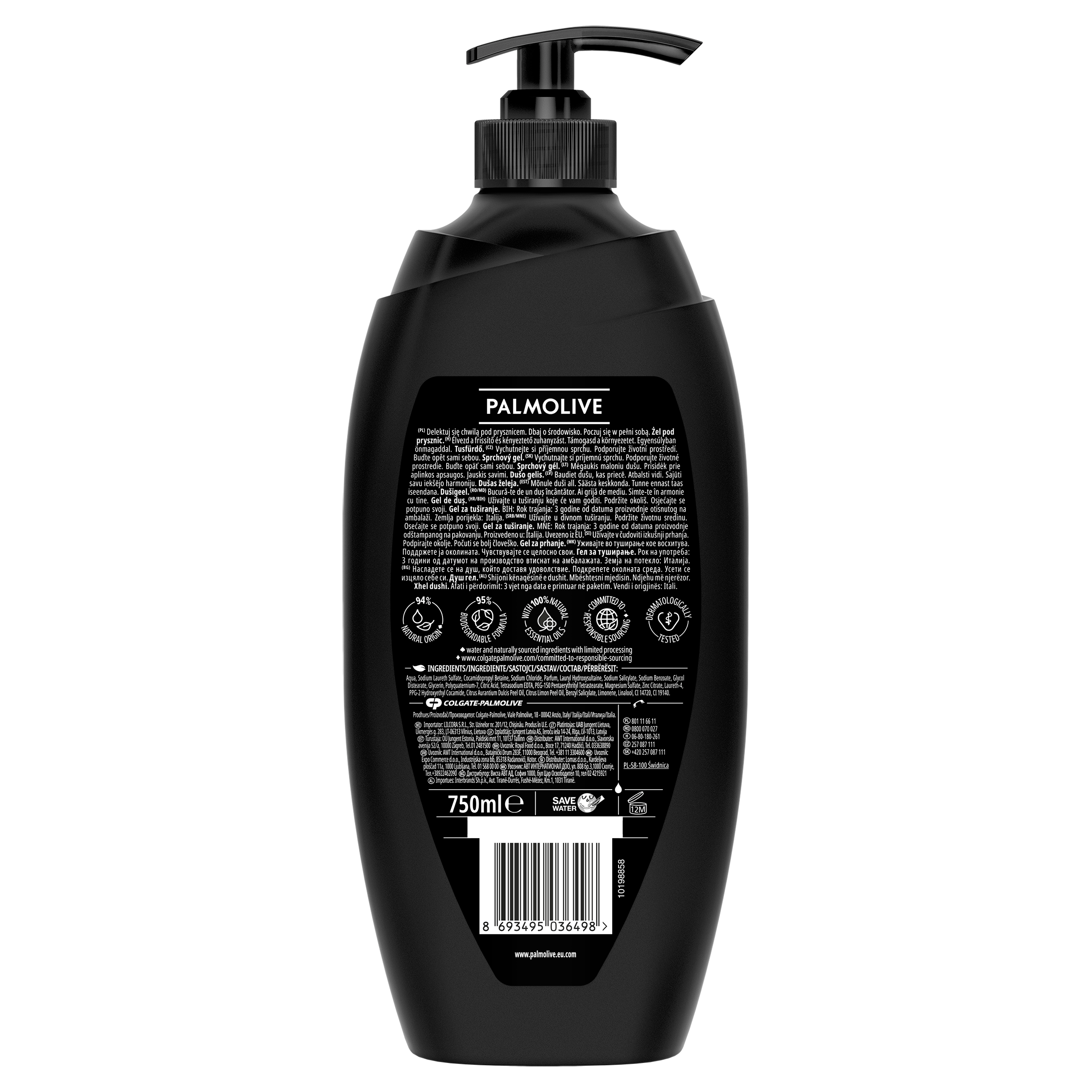 Pociťte svěžest přírody s osvěžujícím sprchovým gelem Palmolive Men 3 v 1. Náš sprchový gel pro muže je inspirován přírodou a obsahuje 100% přírodní esenciální oleje, eukalyptový olej a extrakt z mořské soli pro omlazující sprchu. Navíc čistí tělo, obličej i vlasy, takže se nemusíte trápit s více produkty. Tento sprchový gel pro muže má jemné složení, které bylo dermatologicky testováno, a je pH neutrální, takže je šetrný k vaší pokožce. Protože věříme v jednoduchost, obsahuje náš sprchový gel pro muže také složky z 95 % přírodního původu*, takže se při osvěžující sprše můžete cítit blíže přírodě. Jsme oddáni přírodě, udržitelnosti a odpovědnému získávání**, a proto má náš energizující tělový mycí gel pro muže 95 % biologicky odbouratelné složení, které neobsahuje mikroplasty, a jeho láhev lze recyklovat. Pokaždé, když se budete sprchovat tímto pánským sprchovým gelem, budete se cítit nejen svěží, ale budete také vědět, že děláte něco pro planetu. Buďte sami sebou.