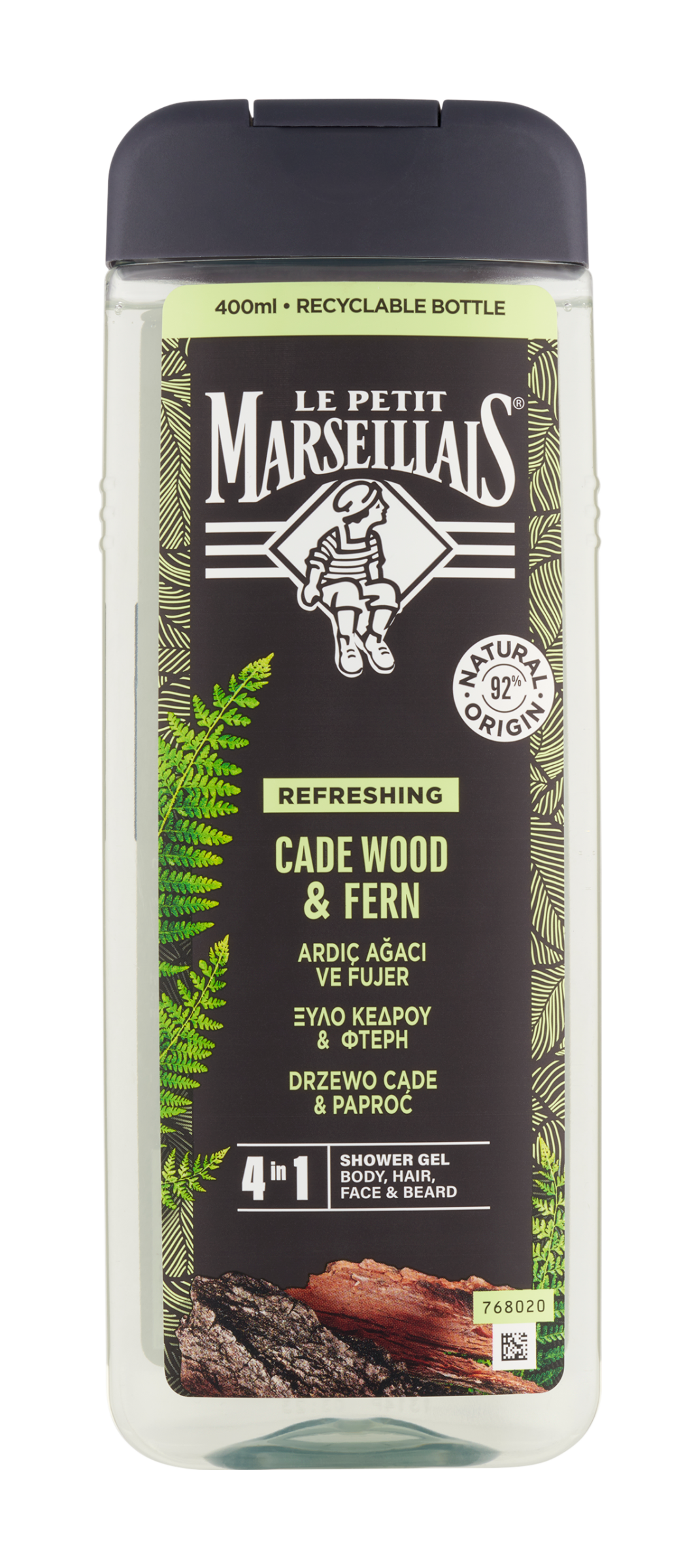 Le Petit Marseillais® sprchový gel Jalovec a Kapradí 4v1 na tělo, vlasy, obličej a vousy. Hledáte svěžest na začátek dne? Použijte sprchový gel Le Petit Marseillais 4v1 s Jalovcem a Kapradím. Jeho snadno oplachovatelná pěna zanechává pokožku hydratovanou a příjemnou na dotek.