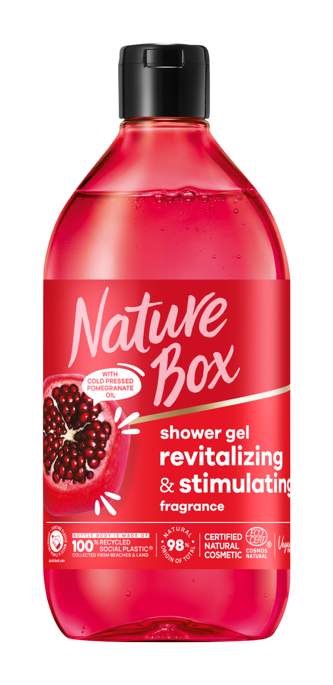 Nature Box Revitalizing & Stimulating sprchový gel - Se za studena lisovaným olejem z granátového jablka Nature Box sprchový gel se složením obsahujícím výživný za studena lisovaný olej z granátového jablka. Tento přírodní sprchový gel obsahuje 98 % ingrediencí přírodního původu*** a je certifikovaný Ecocert Greenlife podle standardu COSMOS. Neobsahuje žádné silikony a umělá barviva. S vůní 100 % přírodního původu. Složení je veganské*. Je recyklovatelný**. Buďte chytřejší. Šetřete vodou. Recyklujte.