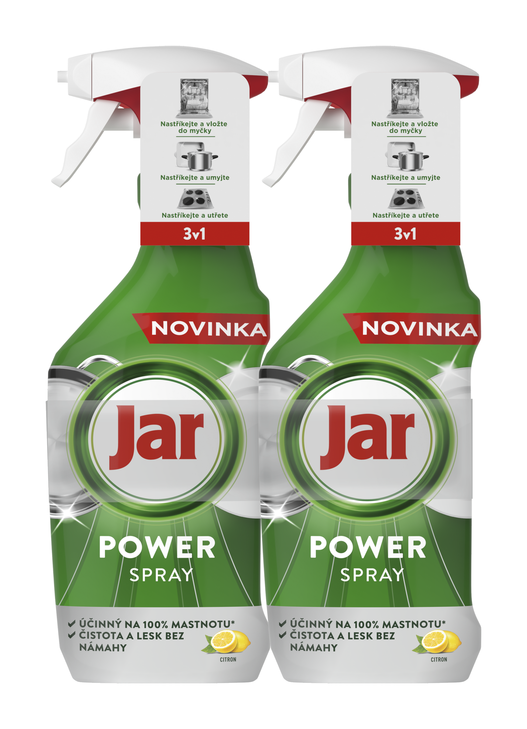 Už vás nebaví namáčet nádobí a drhnout kuchyň? Dejte sbohem starým způsobům čištění díky spreji Jar Power Spray! Náš revoluční víceúčelový sprej 3v1 působí na 100 % každodenní mastnoty na nádobí a v kuchyni před samotným mytím, abyste mohli dosáhnout čistoty a lesku bez námahy. Jeho používání je snadné a zábavné! A navíc vám pomáhá šetřit vodou! Jar Power Spray, jedno řešení na mastnotu před mytím nádobí v myčce, před ručním mytím nádobí a dokonce na kuchyňské povrchy!