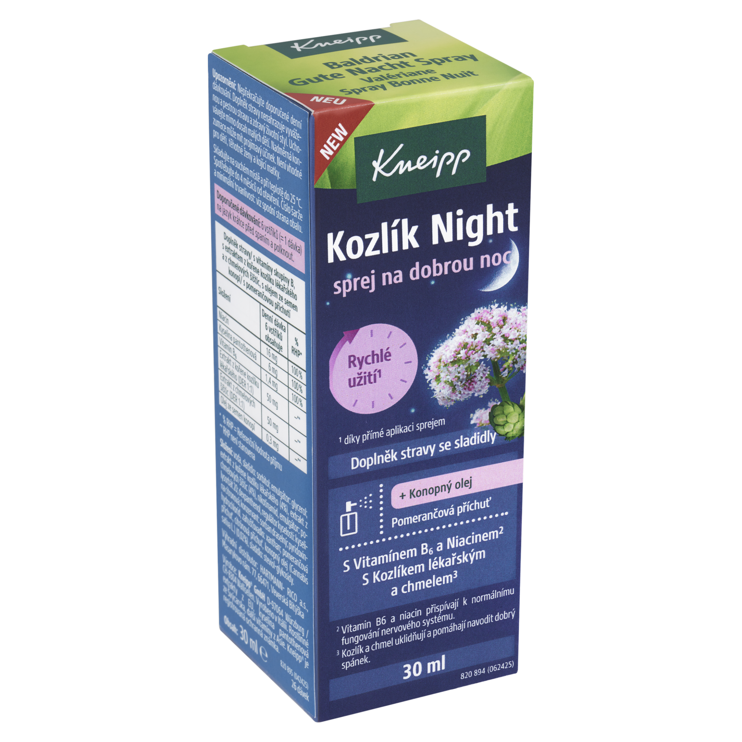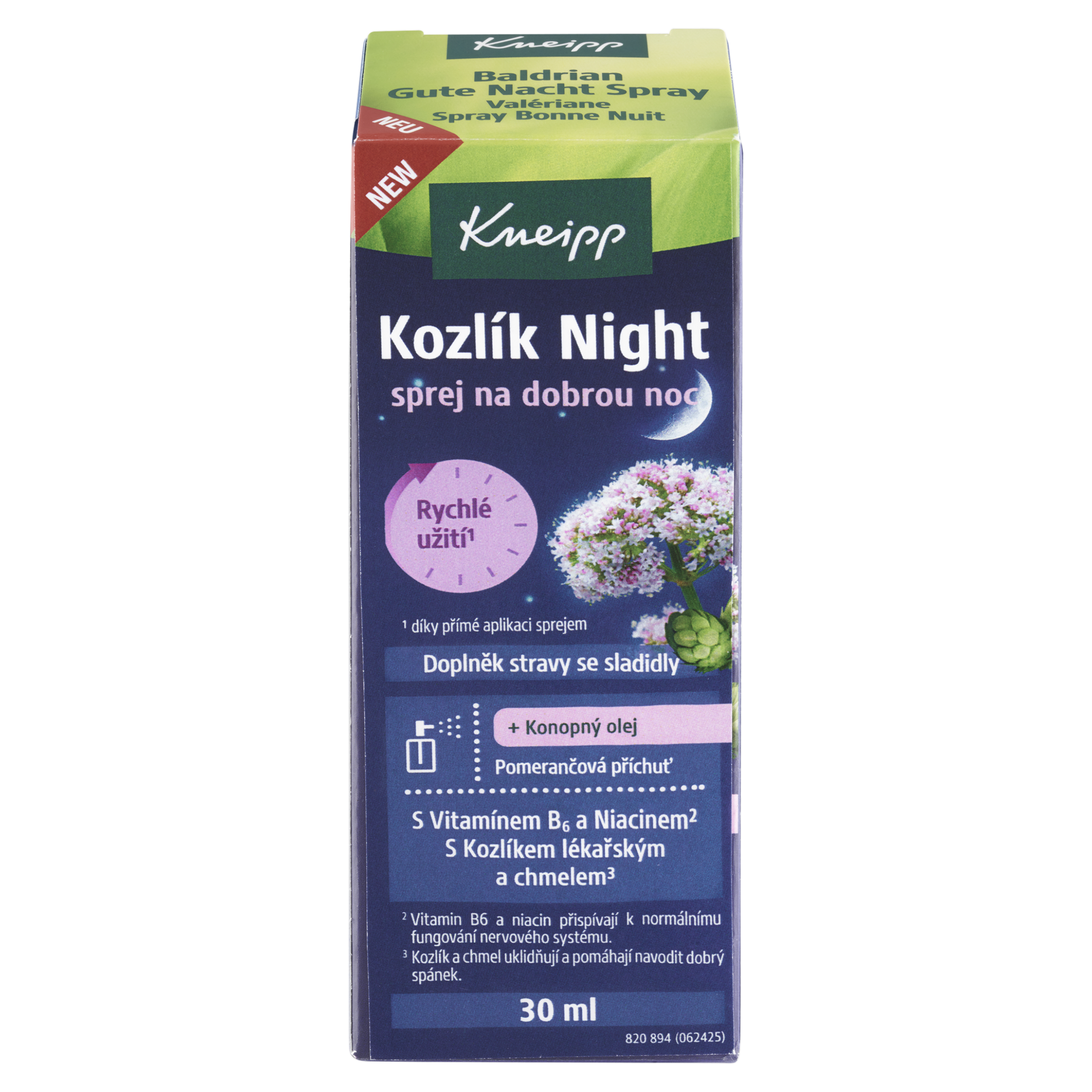 Užijte si klidný spánek s Kneipp ústním sprejem Kozlík Night, který kombinuje sílu vitamínů skupiny B, kozlíku lékařského, chmele a konopného oleje, aby podpořil snadnější usínání a hlubší odpočinek. Díky obsahu vitamínu B6 a niacinu harmonizuje nervový systém a posiluje vnitřní rovnováhu. Praktická sprejová forma zajišťuje rychlé vstřebání a snadno se aplikuje těsně před spaním. Objevte efektivní alternativu k melatoninu a probouzejte se svěží a plní energie.