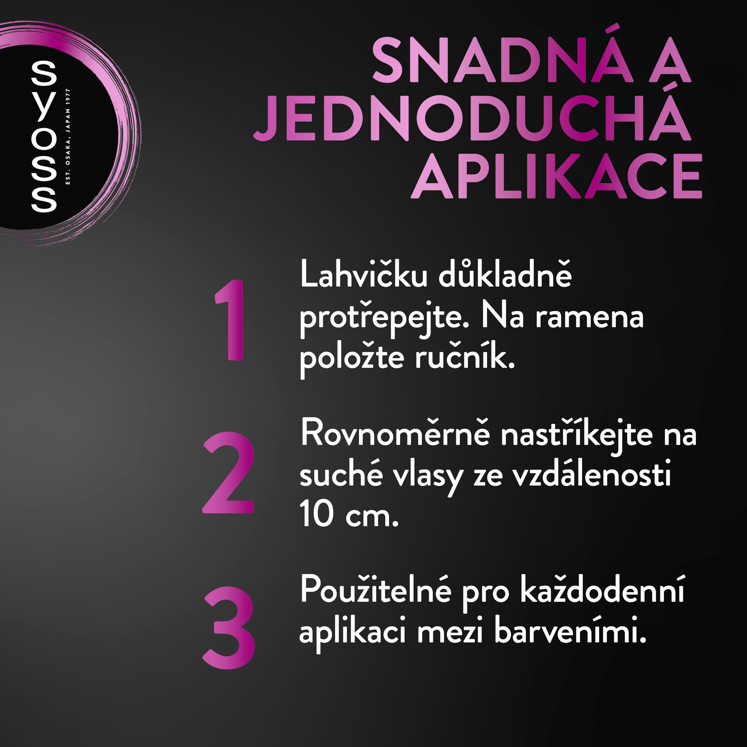 S více než 45letou kadeřnickou historií je Syoss navržen pro profesionální výkon a poskytuje vašim vlasům syté permanentní barvy, hloubkovou péči a dokonalý styling. YOU.INTENSIFIED.