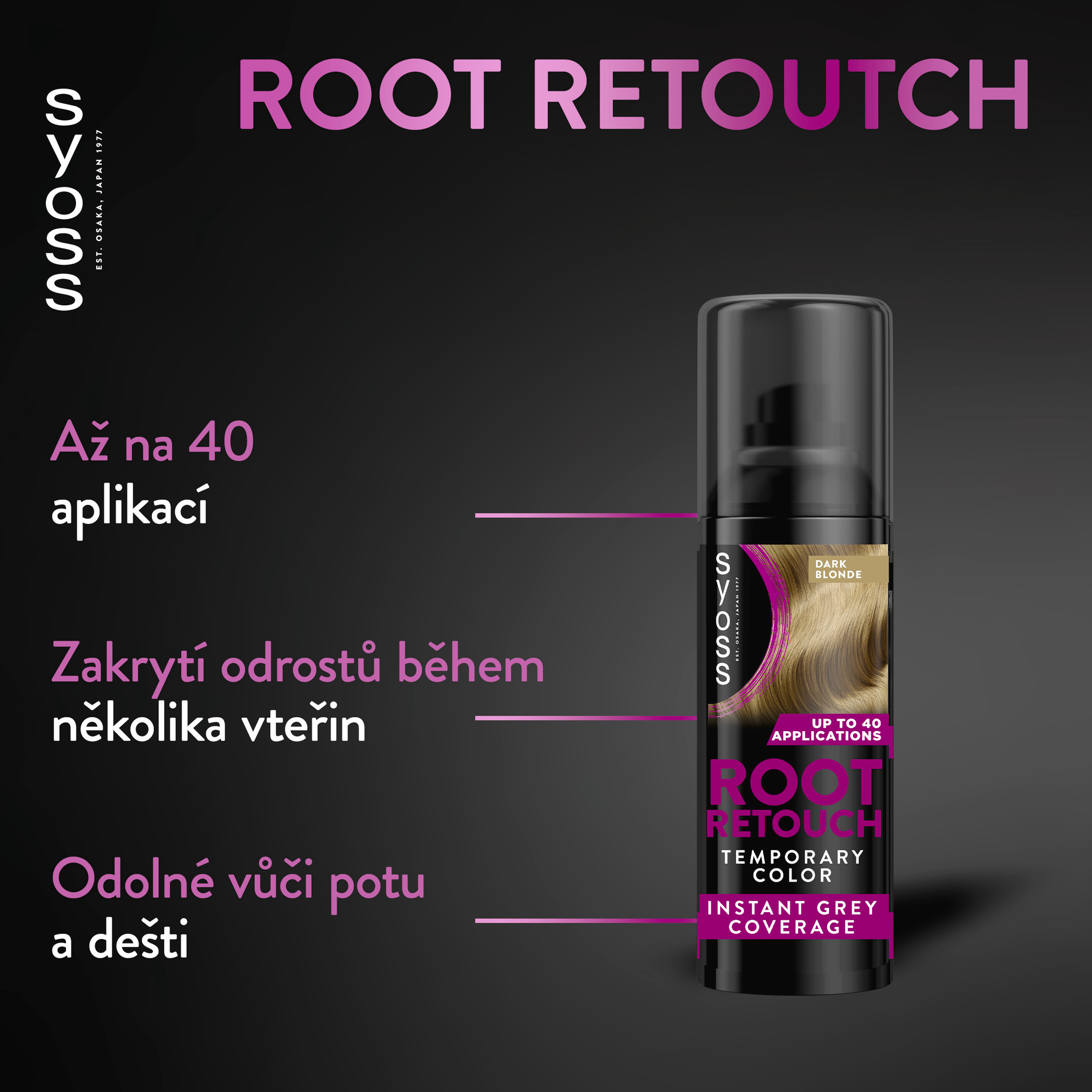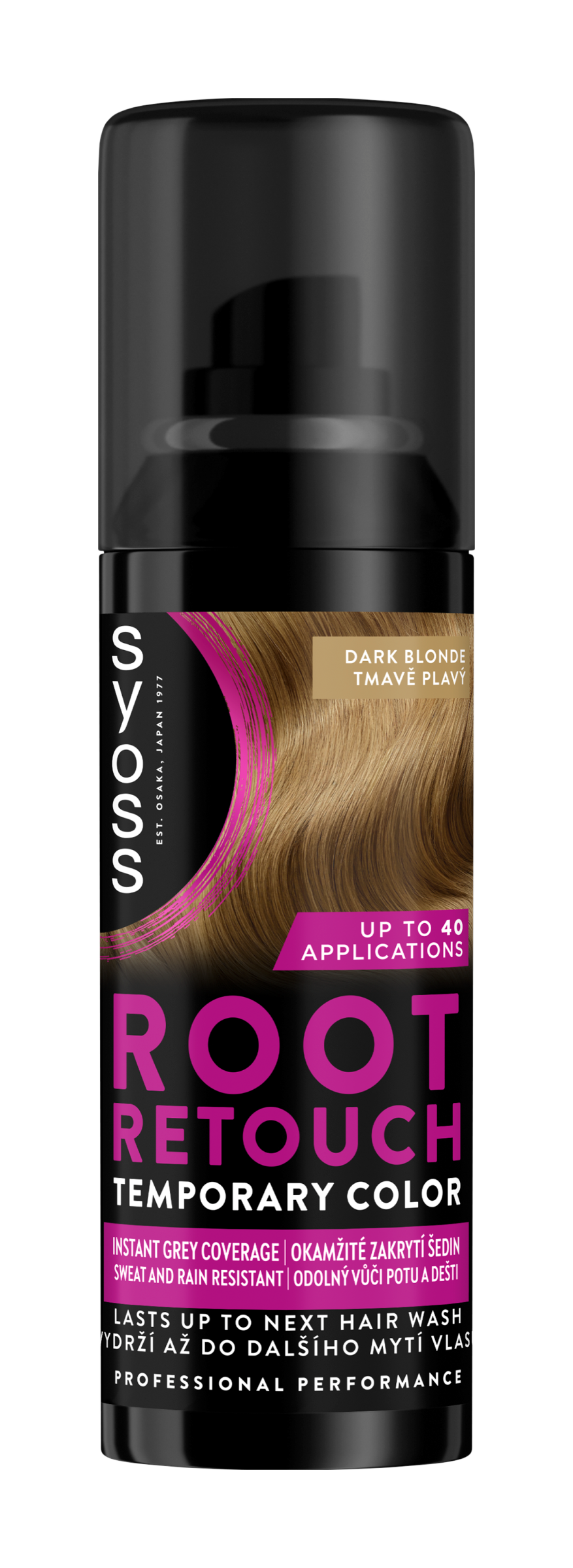 Syoss Root Retouch tmavě plavý až na 40 použití! Okamžitě zakryjte odrosty během několika sekund se sprejem Syoss Root Retouch! Tento sprej na úpravu odrostů je rychlý a snadný na použití díky okamžitému schnutí, které zajistí rovnoměrný barevný výsledek, jenž dokonale splyne s délkami vlasů. Tmavě plavý sprej na odrosty Syoss má přesný aplikátor, který vám pomůže zakrýt odrosty přesně tam, kde je to potřeba.