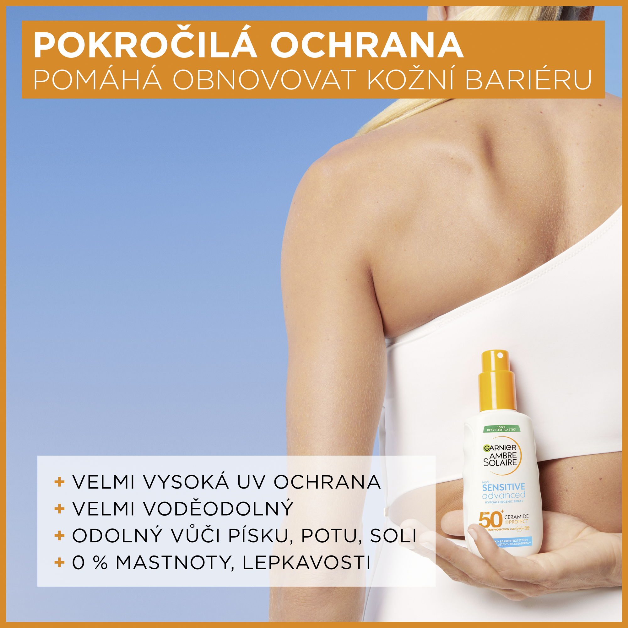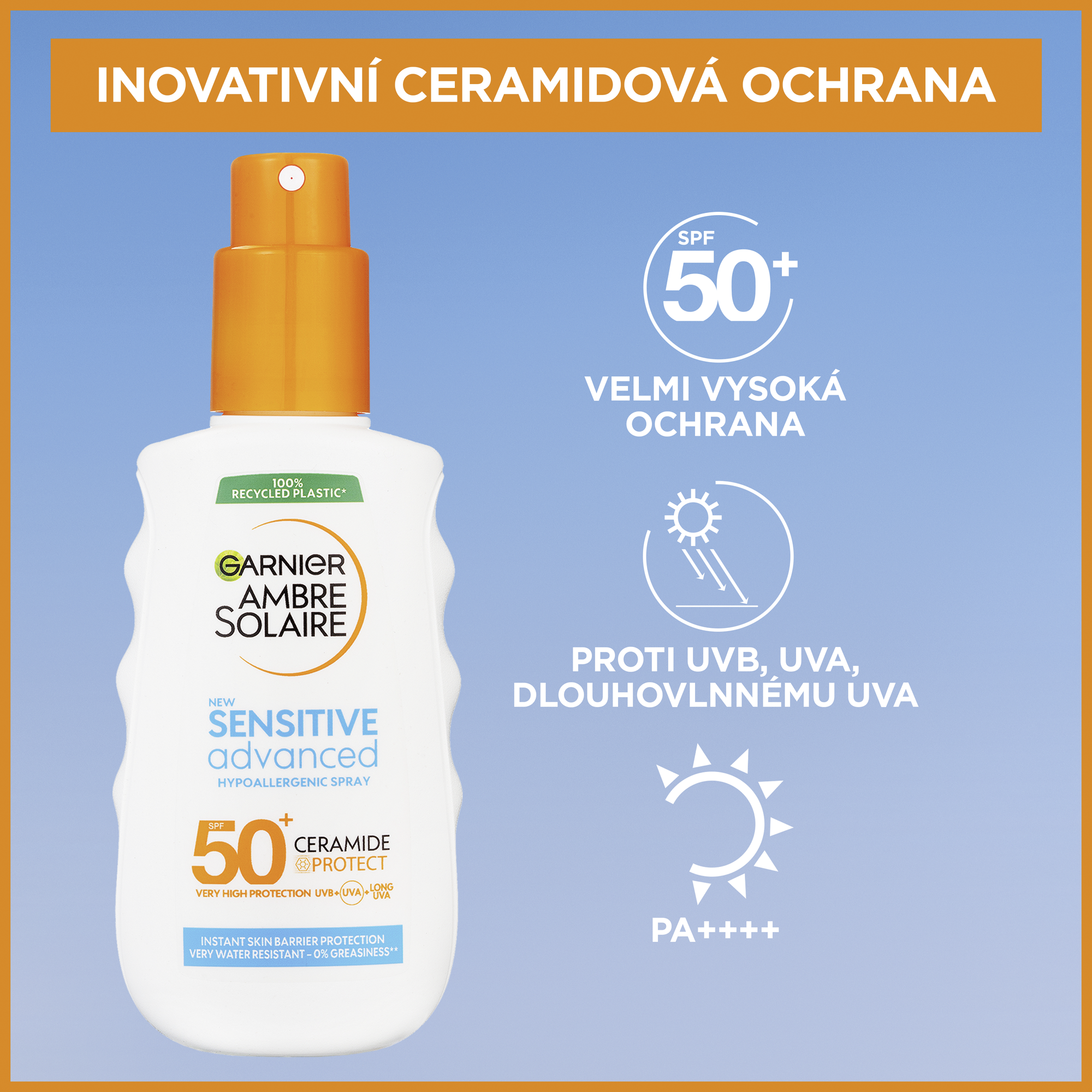 Sensitive Advanced ochranný sprej s ceramidy spolehlivě chrání citlivou pokožku, rychle se vstřebává a je voděodolný. Vhodný na tělo i obličej. Bez parfemace, testováno pod dermatologickou kontrolou. Výzkum opalovací kosmetiky Garnier je uznáván Britskou kožní nadací British Skin Foundation.