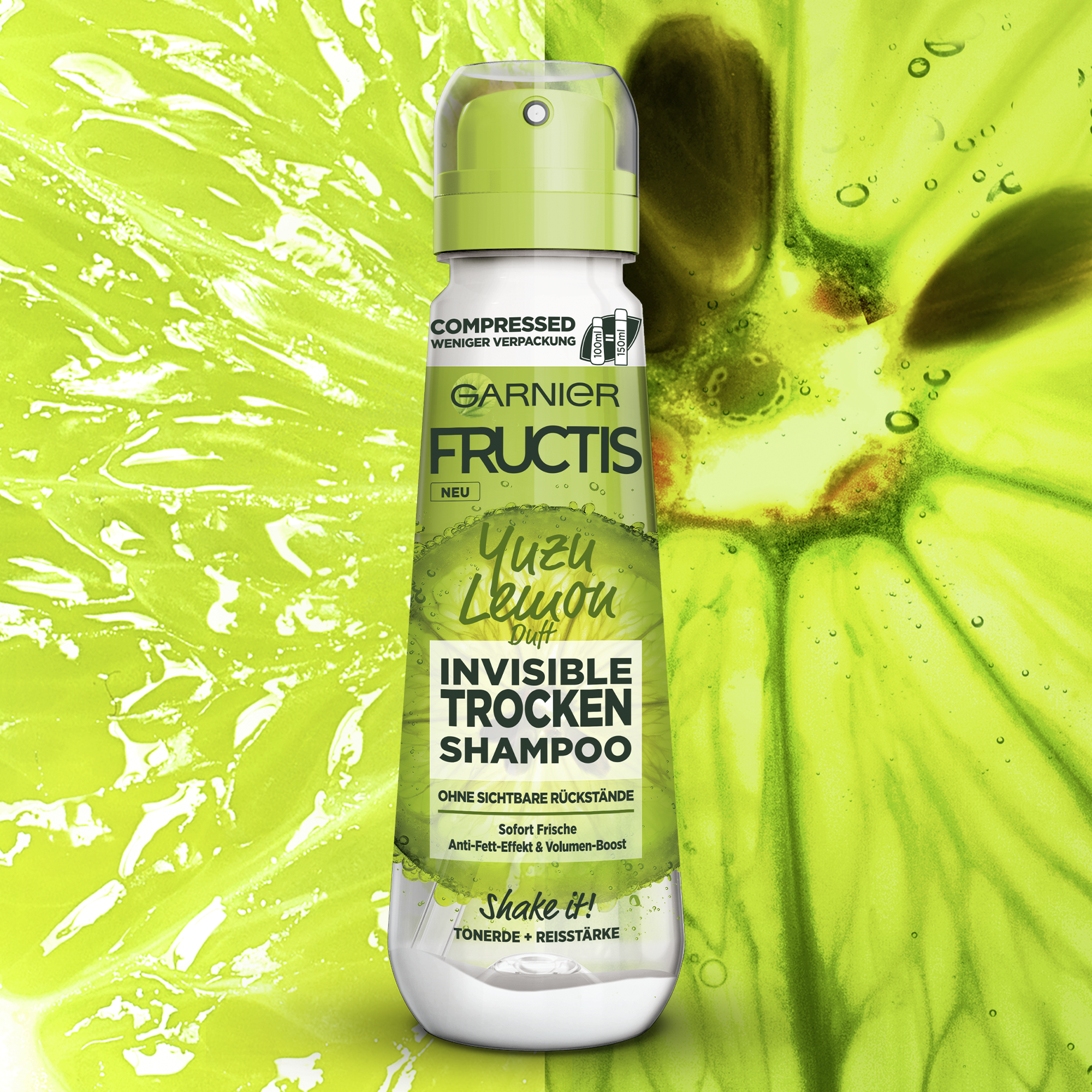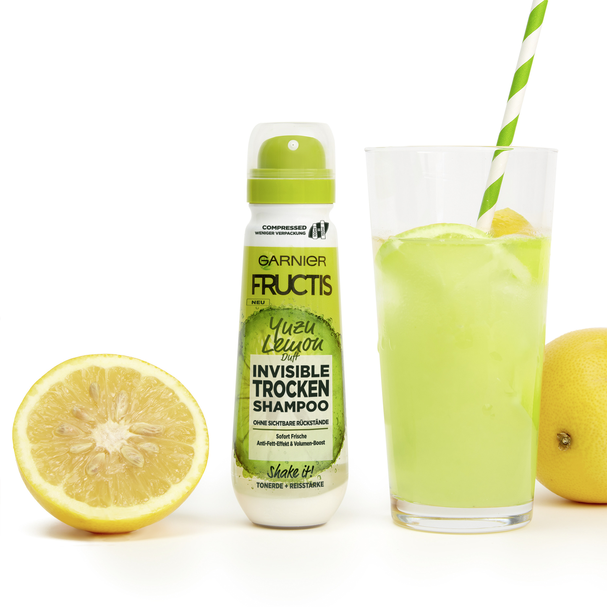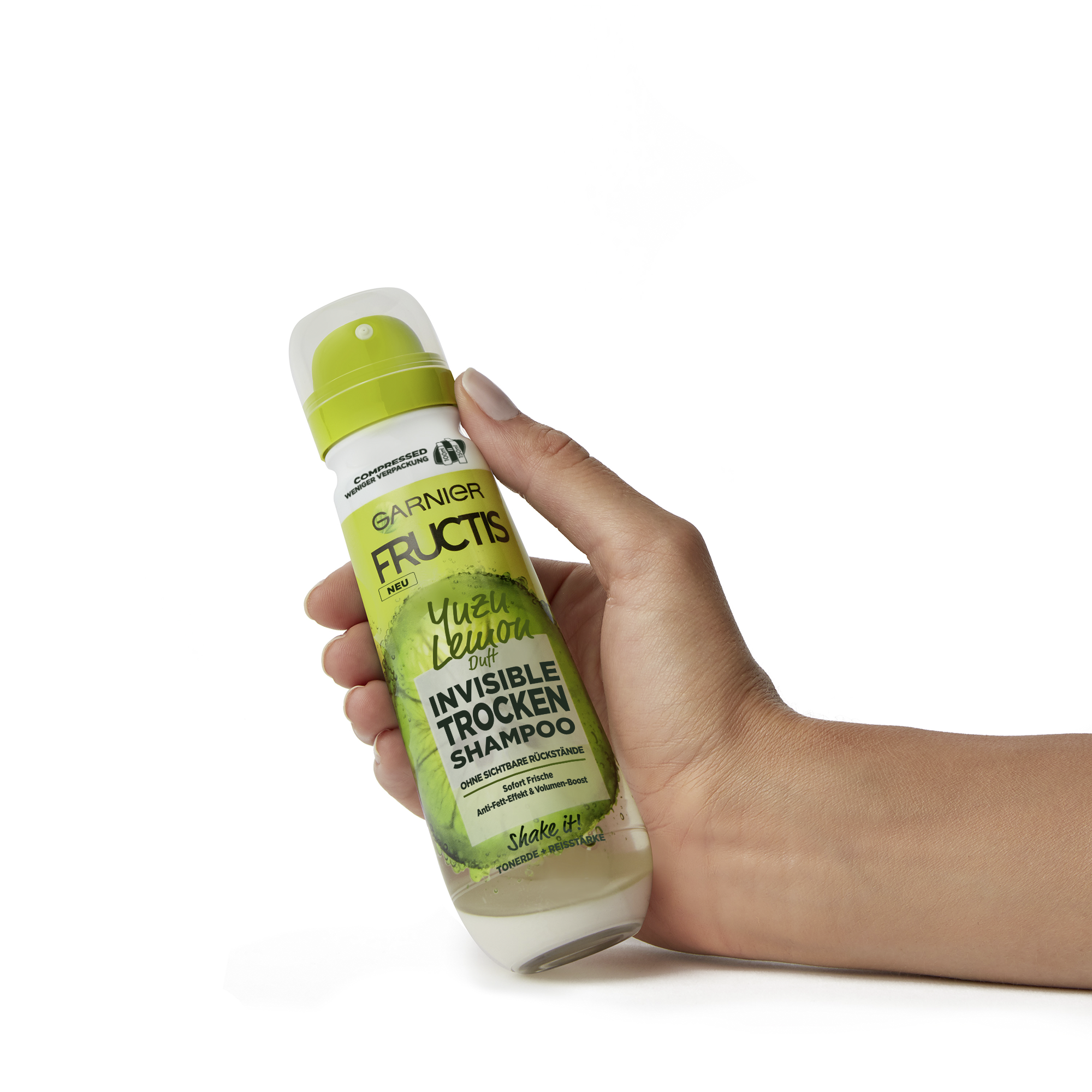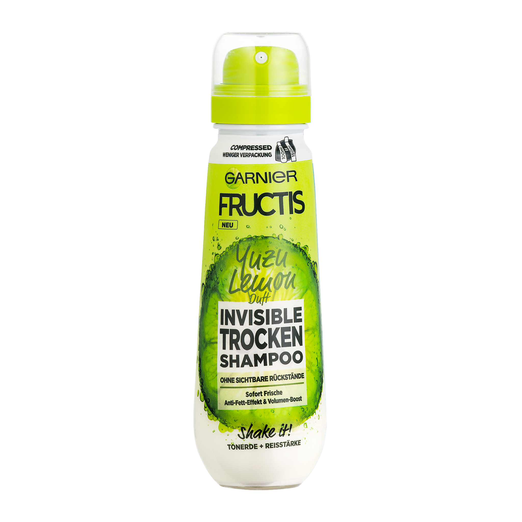 GARNIER Fructis transparentní suchý šampon na vlasy Yuzu Lemon nezanechává bílé stopy. Umožňuje okamžitou úpravu vlasů, která jim dodá objem, fixaci a svěží vzhled na celý den. Okamžitý a dlouhotrvající účinek! Dopřejte svým vlasům svěžest se suchým šamponem Yuzu Lemon od značky GARNIER Fructis.