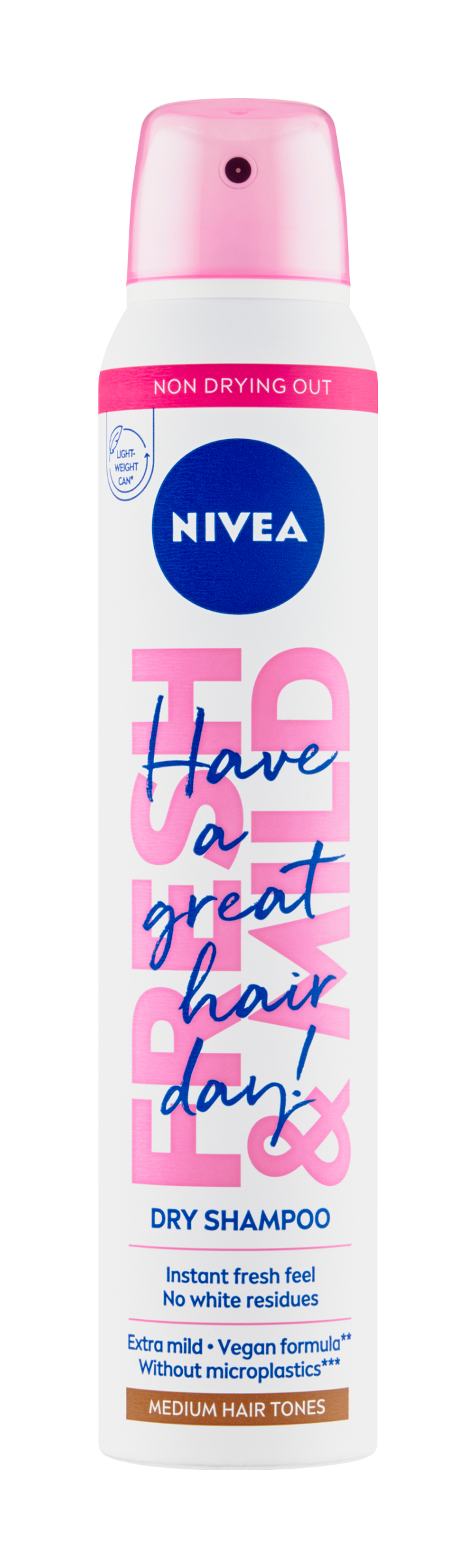 Nivea® Suchý šampon pro světlejší tón vlasů - zanechá ve vlasech svěží pocit bez bílých stop. Bez mikroplastů - na základě definice UNEP. Veganské složení - neobsahuje ingredience živočišného původu. Lehčí obal - v porovnání s předchozí verzí.