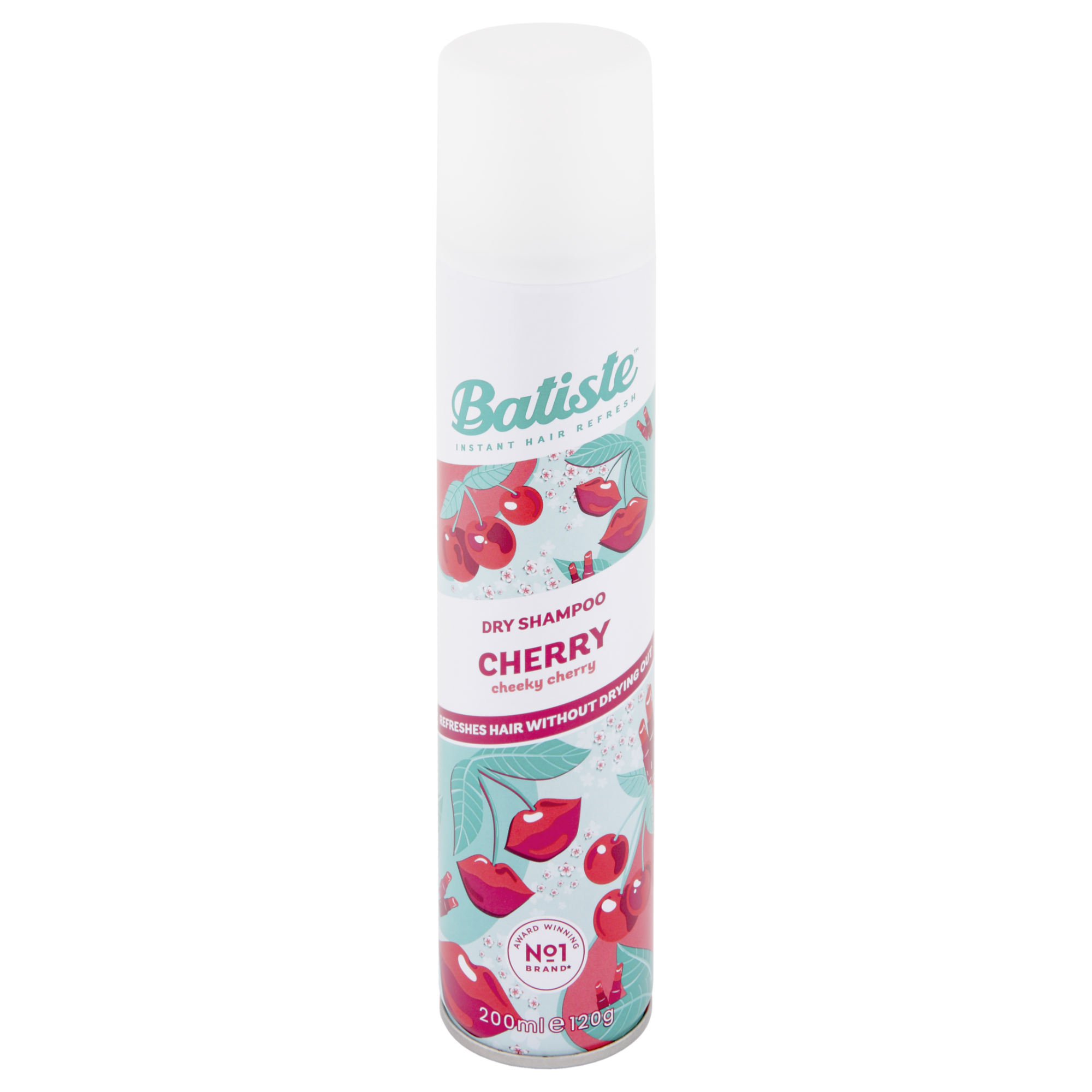 Suchý šampon Cherry je určen pro každého milovníka sladké, jemné a svůdné retro vůně. Suchý šampon voní po šťavnatých třešních a vlasy dokonale oživí. Navíc se bude dokonale vyjímat na kosmetickém stolku nebo ve Vaší klasické kabelce. Suchý šampon Batiste je ideální pro použití mezi jednotlivými mytími. Účesu poskytne rychlé oživení, odstraní nadbytečnou mastnotu a dodá na textuře a objemu. S Batiste získáte pocit čistých a svěžích vlasů, a to okamžitě bez použití vody.
