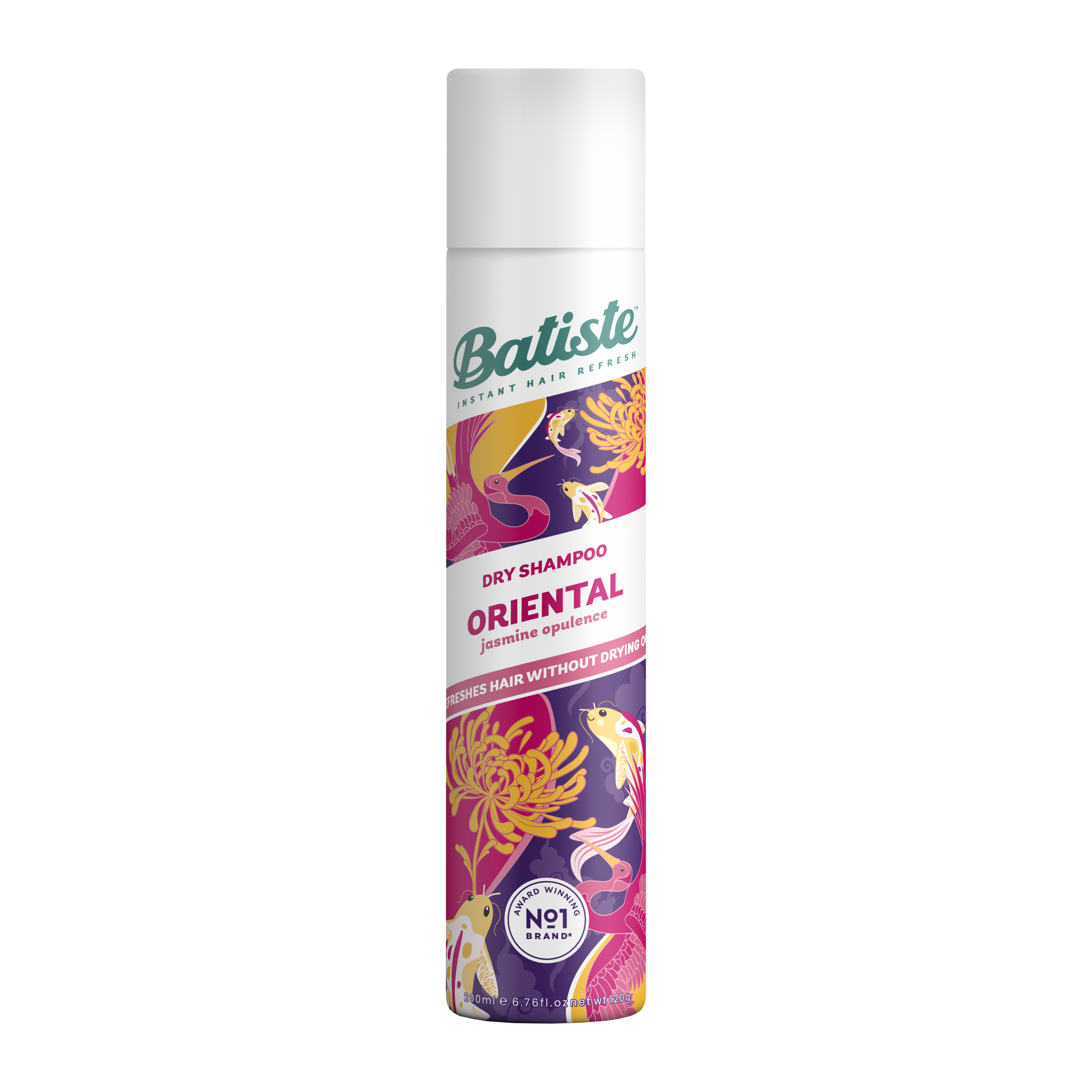 Suchý šampon Batiste Oriental s tajemnou květinovou vůní. Obnovte krásu svých vlasů v orientálním stylu. Okamžité oživení vlasů s delikátní hřejivou vůní. Příměs ovoce, květin a kokosu vám zaručí honosný vzhled i vůni. Suchý šampon Batiste je ideální pro použití mezi jednotlivými mytími. Účesu poskytne rychlé oživení, odstraní nadbytečnou mastnotu a dodá na textuře a objemu. S Batiste získáte pocit čistých a svěžích vlasů, a to okamžitě bez použití vody.
