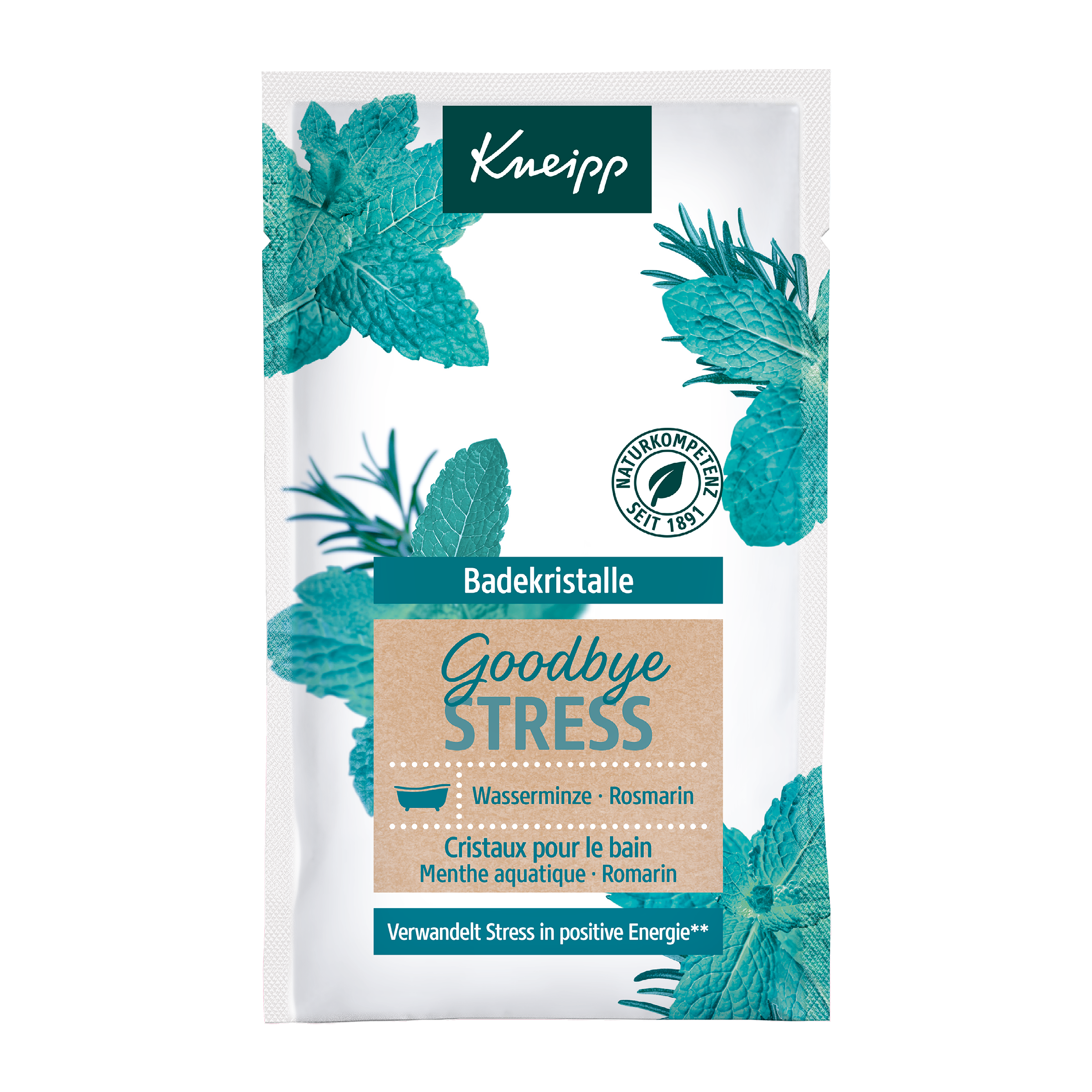 Kneipp® sůl do koupele Goodbye Stress s přírodním esenciálním rozmarýnovým olejem a extraktem z máty vodní. Čistá, osvěžující vůně vám pomáhá hodit každodenní stres za hlavu.