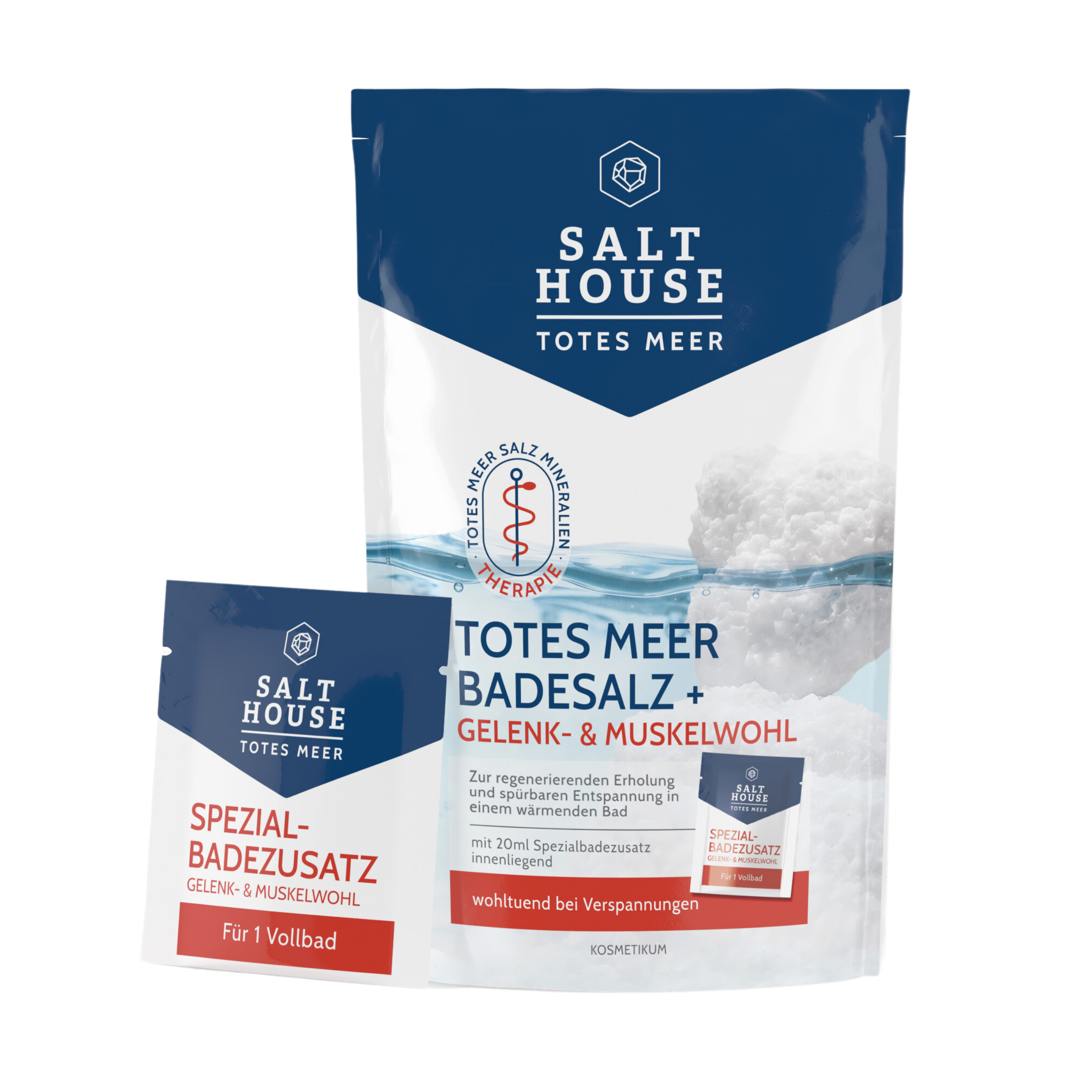Koupelová sůl SALTHOUSE Original z Mrtvého moře se speciální koupelovou přísadou Joint & Muscle Wellbeing poskytuje uklidňující relaxaci po fyzické námaze, po sportu, stresu v každodenním životě nebo v případě nepříjemného napětí. Přírodně čistá krystalická koupelová sůl s unikátní kombinací minerálů vápníku, hořčíku, draslíku a bromu má zklidňující a hydratační účinky na pokožku. V kombinaci s naordinovanou speciální přísadou do koupele s vonnými výtažky z tygří byliny a zázvoru rozvíjí intenzivní hluboké teplo v relaxační koupeli. Zanechává pokožku uvolněnou, uvolňuje svaly a má výrazně zklidňující a uvolňující účinek na celý organismus.