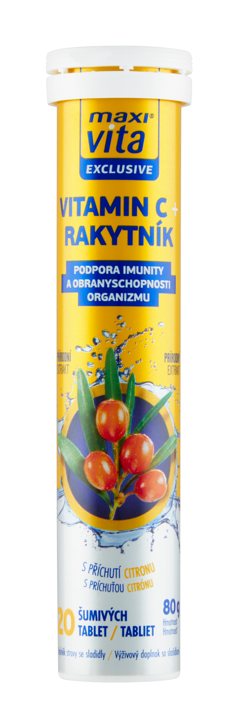 Šumivé tablety s obsahem z rakytníku řešetlákového a vitaminu C. Podpora imunity a obranyschopnosti organizmu. Obsahuje přírodní extrakt z plodů rakytníku řešetlákového, který podporuje imunitní systém a přirozenou obranyschopnost organizmu. V tradiční medicíně je rakytník ceněn pro vysoký obsah vitaminu C, E a karotenoidů.