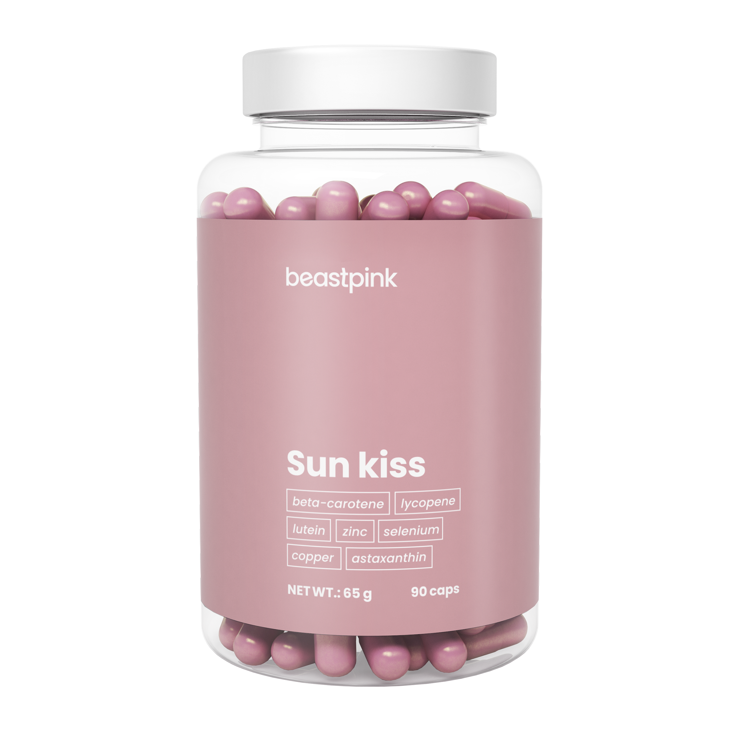 Sun Kiss jsou unikátní kapsle obsahující pečlivě vybrané látky s vlivem na pigmentaci pokožky a udržení jejího zdravého vzhledu. Díky tomu jsou oblíbené zejména mezi lidmi, kteří touží po perfektním bronzovém opálení a zdravé pokožce. Ve složení najdete například mrkvový extrakt, který pravděpodobně znáte spíše v souvislosti s betakarotenem. Jedná se o významný karotenoid, který se vyznačuje svým žluto-červeným zbarvením. Zároveň je také antioxidantem a prekurzorem vitamínu A, jenž má vliv na udržení zdravé pokožky. Možná se k vám dostala známá informace, že kdo chce mít bronzovou pleť, měl by jíst více mrkve. I to je důvod, proč se betakaroten často přidává do doplňků podporujících bronzové opálení. Svou roli má však v kapslích také l-tyrozin. Jedná se o aminokyselinu, která stojí na samém počátku melanogeneze. Výsledkem tohoto procesu je vytvoření tmavého pigmentu melaninu, který má vliv na zbarvení kůže. Čím více melaninu člověk v těle má, tím je jeho pokožka tmavší. Ve složení si můžete všimnou také zkratky PABA. Jedná se o kyselinu paraaminobenzoovou, která byla dříve běžnou součástí opalovacích krémů. Dnes je oblíbená především u lidí, kteří chtějí podpořit kvalitu a zbarvení pokožky. V doplňku nechybí ani lutein, lykopen a astaxantin. Ty se řadí mezi silné antioxidanty, které pomáhají snižovat oxidační stres a bojovat s volnými radikály, jenž se mohou tvořit i v pokožce vlivem působení UV záření. Celý komplex je doplněný i o důležité minerální látky, kterými jsou zinek, měď a selen. Zinek má vliv na správnou přeměnu již zmíněného vitamínu A, navíc však pomáhá také udržet zdravé vlasy, nehty a pokožku. Měď pak zase přispívá ke zdravé pigmentaci vlasů a pokožky, svou roli však sehrává také během procesu melanogeneze. Poslední minerální látkou je selen, který má rovněž vliv na udržení zdravých nehtů, vlasů, správné fungování imunity a také pomáhá chránit buňky před oxidačním stresem. Pokud se pravidelně opalujete na slunci nebo v soláriu, je tento komplexní doplněk skvělý prostředek k tomu, abyste podpořili výsledný efekt a také pomohli chránit vaši pokožku. Kromě toho však přispívá také k udržení zdravých nehtů, vlasů a správné funkci imunity. Je ve formě praktických kapslí, které se snadno užívají. Můžete si je vzít snadno s sebou i na dovolenou k moři, kde si budete nejspíš slunce užívat daleko více.