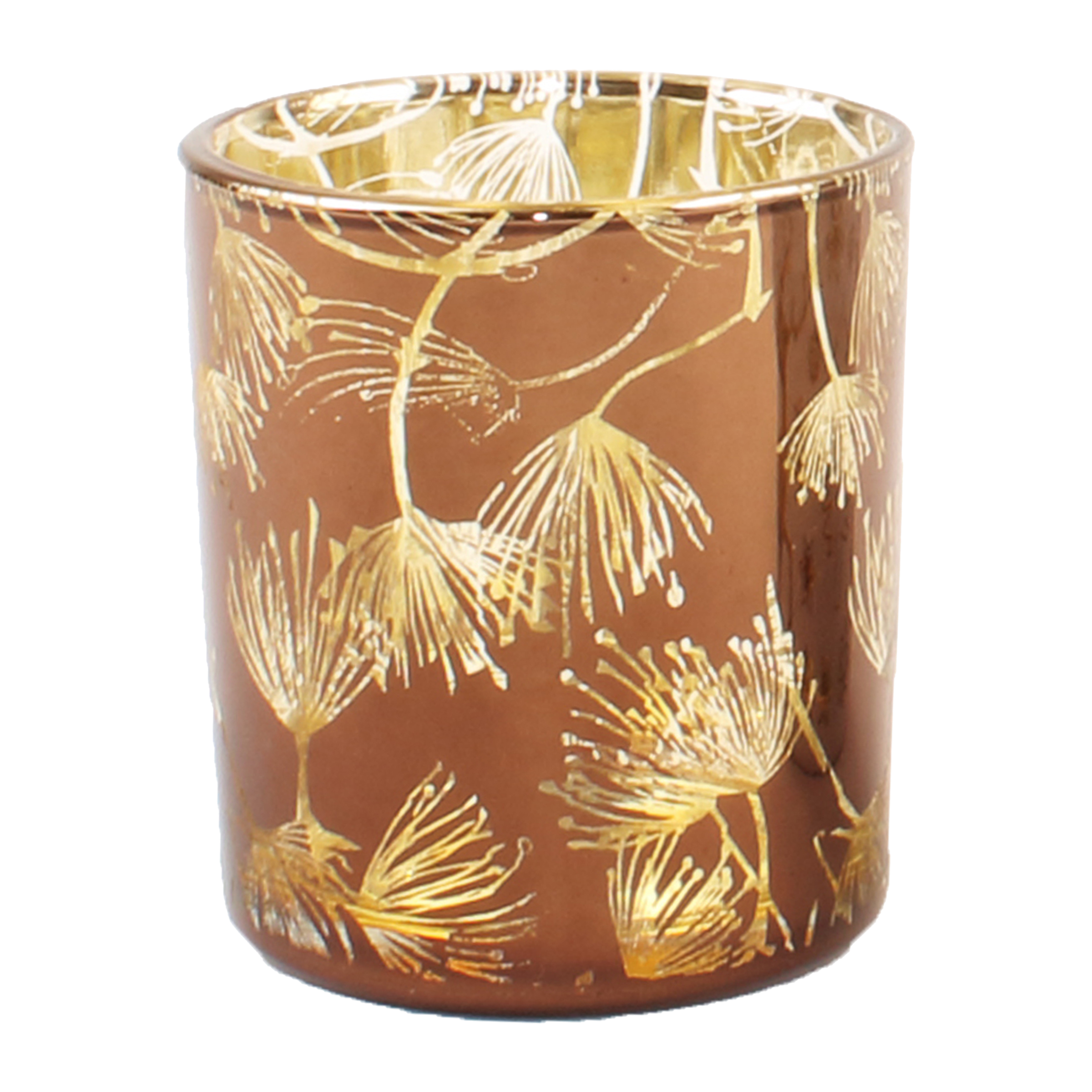 Elegantní kovový svícen s jemným zlatým dekorem. Cylindrický tvar o rozměrech 8 × 7 cm je ideální pro čajové svíčky. Stylový doplněk pro vánoční i celoroční atmosféru domova.