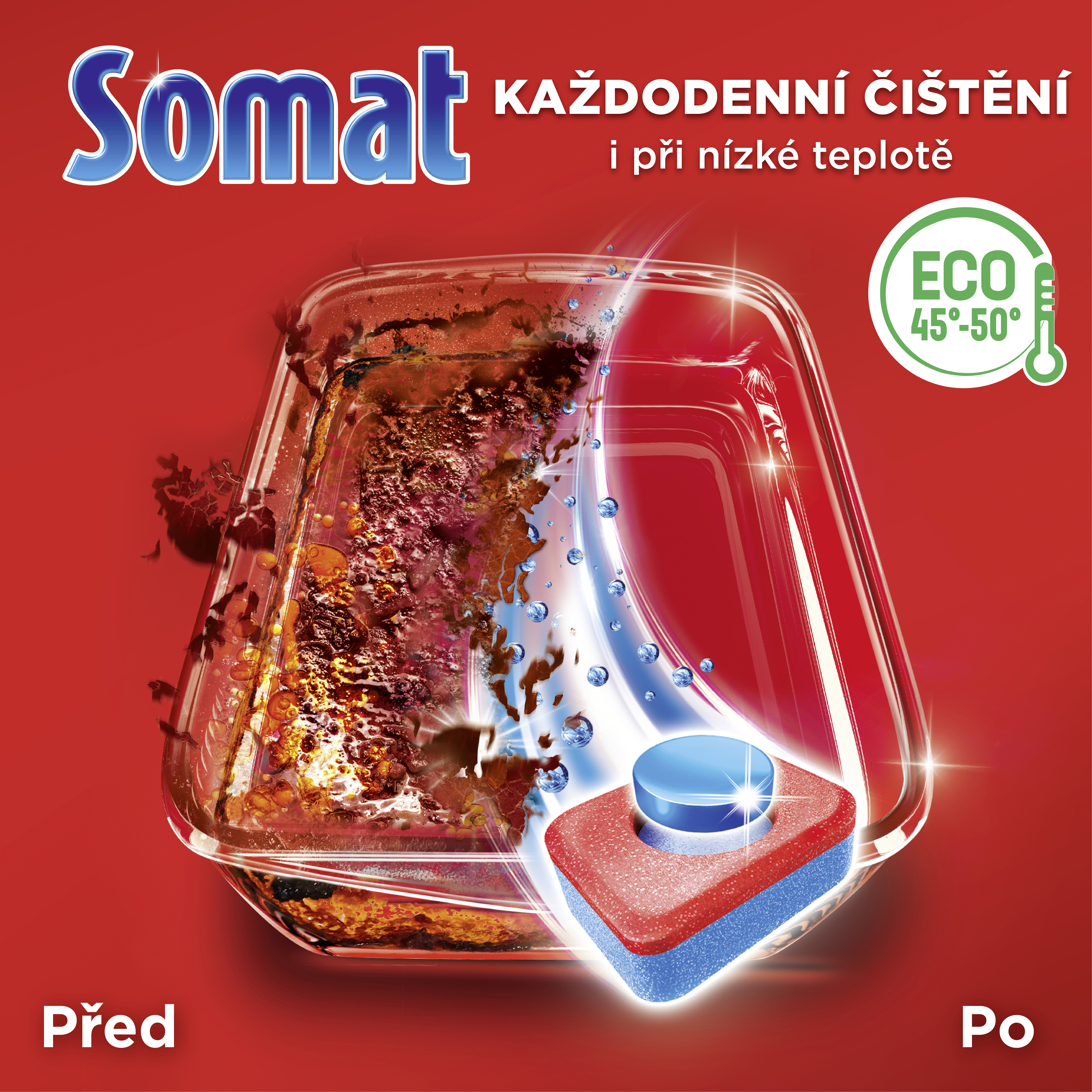 - SILNÝ ČISTICÍ ÚČINEK: Tablety do myčky Somat odstraňují zaschlé zbytky jídla a zanechávají nádobí zářivě čisté, a to i na eco program s nízkou teplotou.