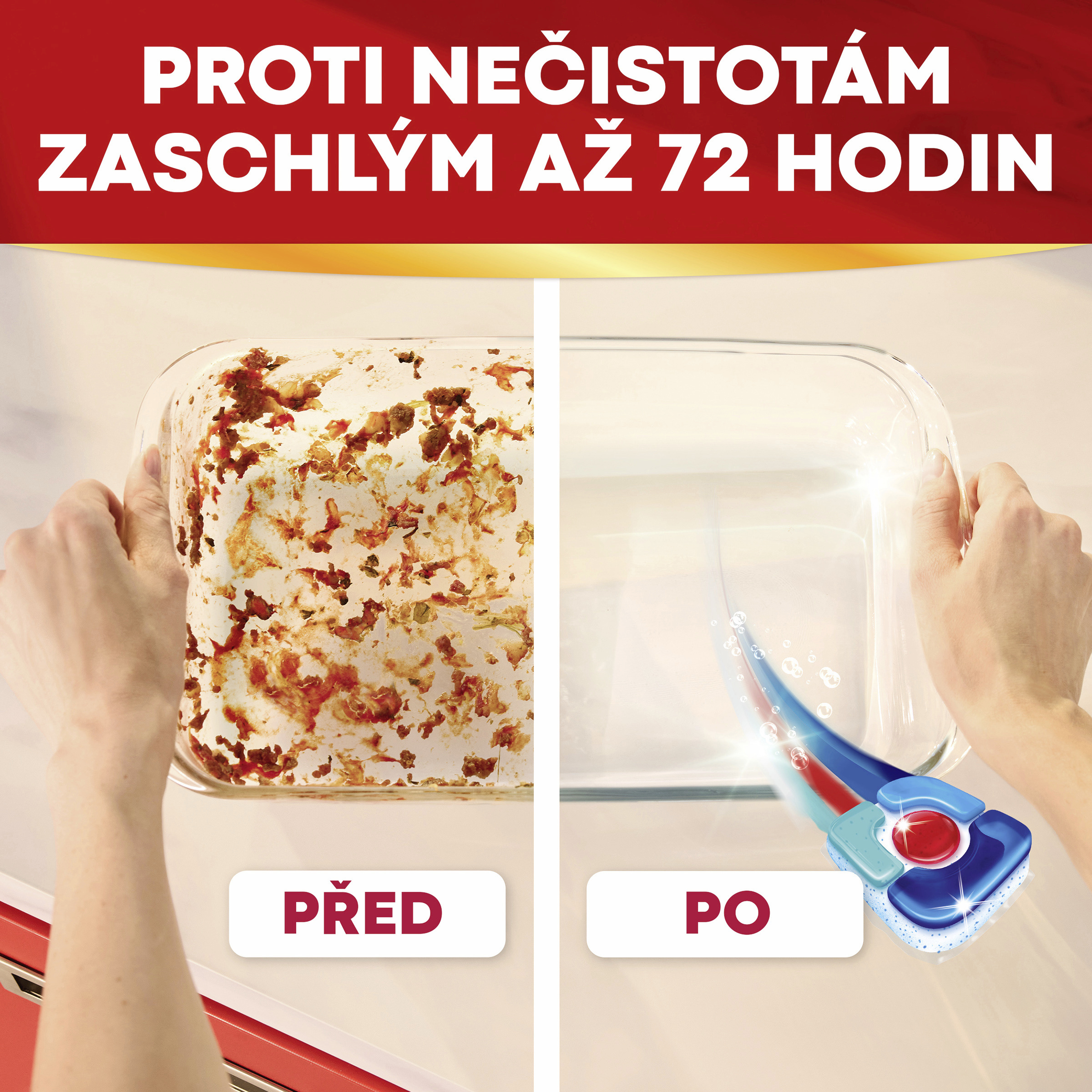 - Hloubkové čištění připálených zbytků jídla a usazené mastnoty; účinné i při krátkých cyklech a nízkoteplotních ekocyklech.