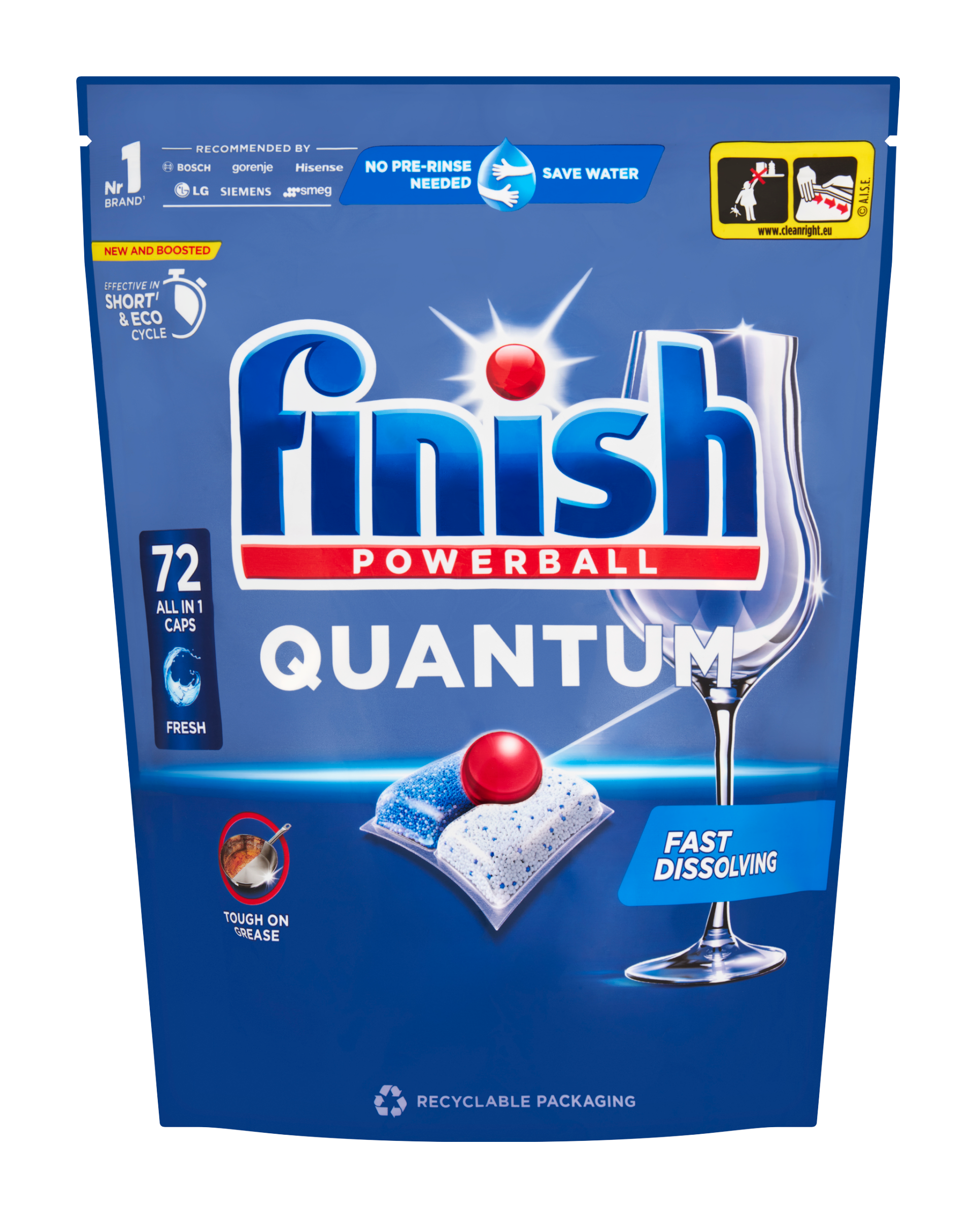 Tablety Finish Quantum s ohromující silou gelu jsou ideálním pomocníkem při mytí nádobí v každé myčce. Chrání sklo před korozí, pečují o stříbro a zaručí vždy dokonale čistý výsledek. Mastnota a zaschlé jídlo jsou prakticky bez šance. Gelové tablety Finish Quantum zabraňují i usazování vodního kamene, který je postrachem všech myček, a v čistotě udržují i filtr samotné myčky.