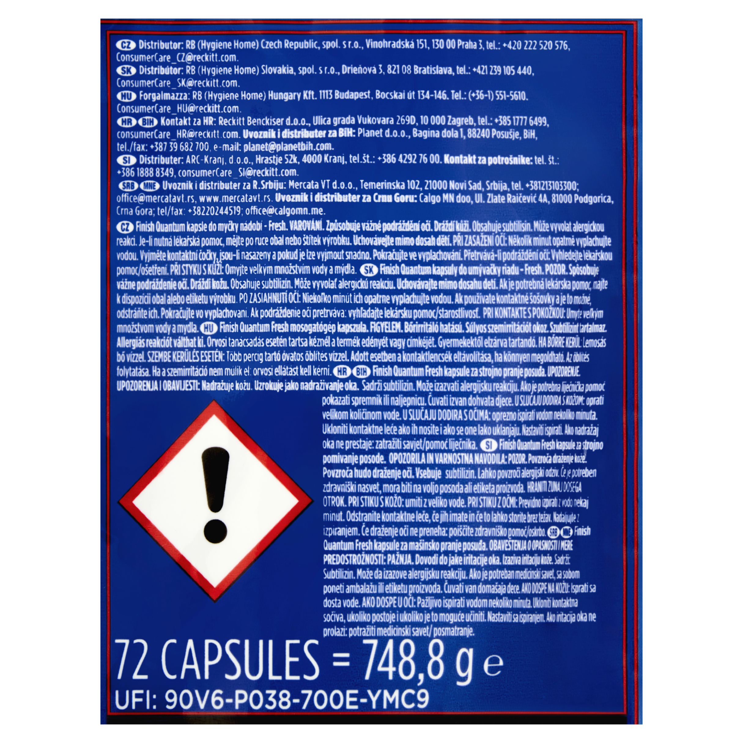 Po použití důkladně uzavřete. Pro zachování kvality kapslí Finish Quantum sáček po užití vždy důkladně uzavřete a skladujte mimo dosah tepla a vlhkosti.