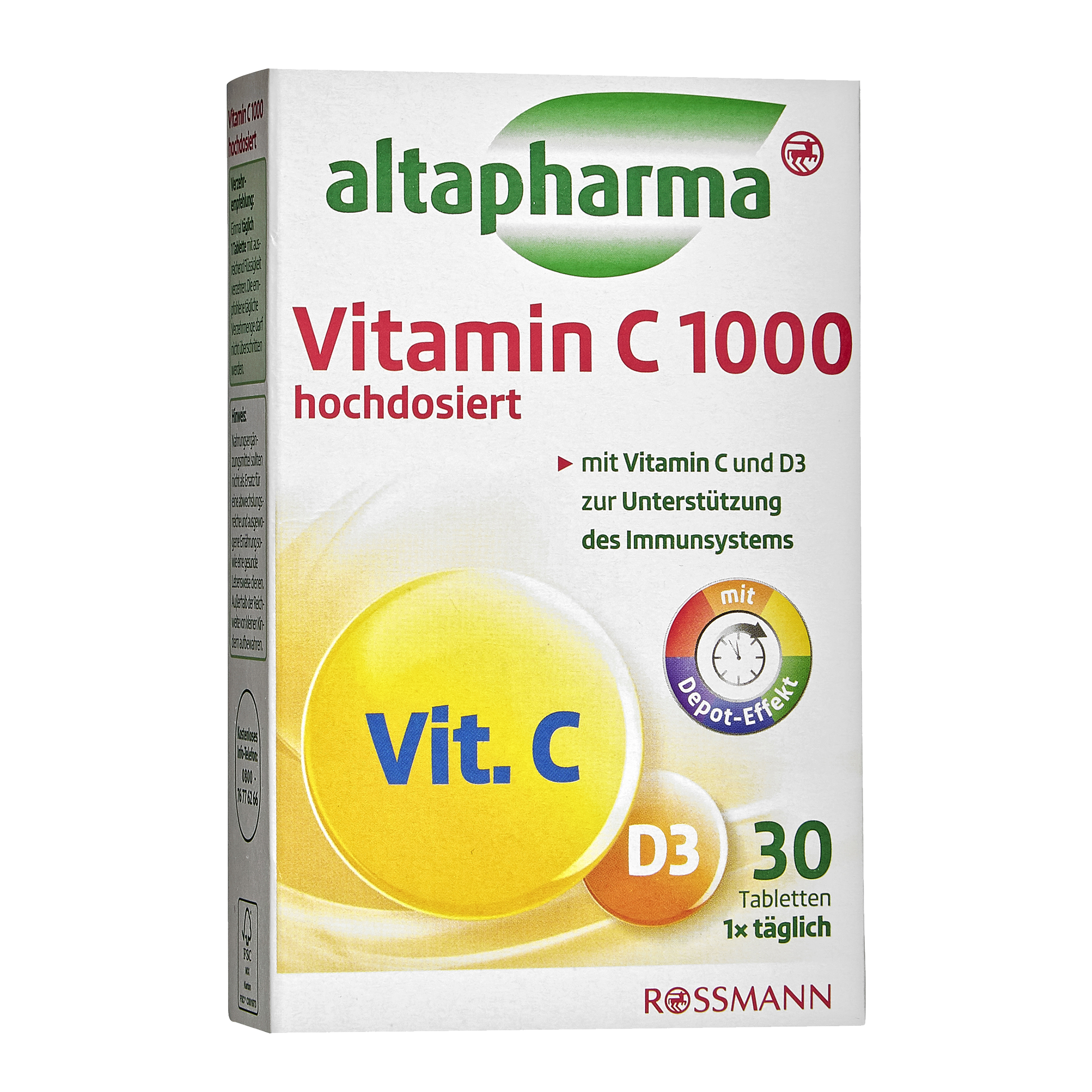 Altapharma tablety s vitaminem C a D3 jsou doplňkem stravy, který přispívá k normální funkci imunitního systému. Neslouží však jako náhrada pestré a vyvážené stravy. Dbejte proto na různorodou a vyváženou stravu a zdravý životní styl.