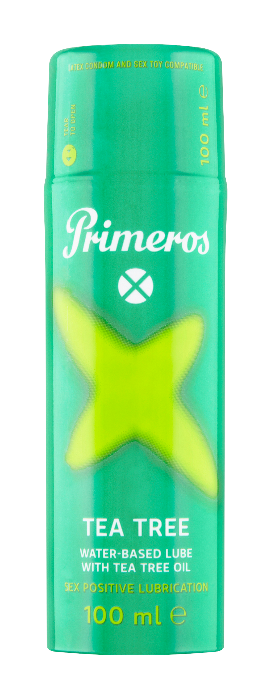 Primeros Tea Tree lubrikační gel na vodní bázi s výtažkem z čajovníku australského, vhodný pro vegany.