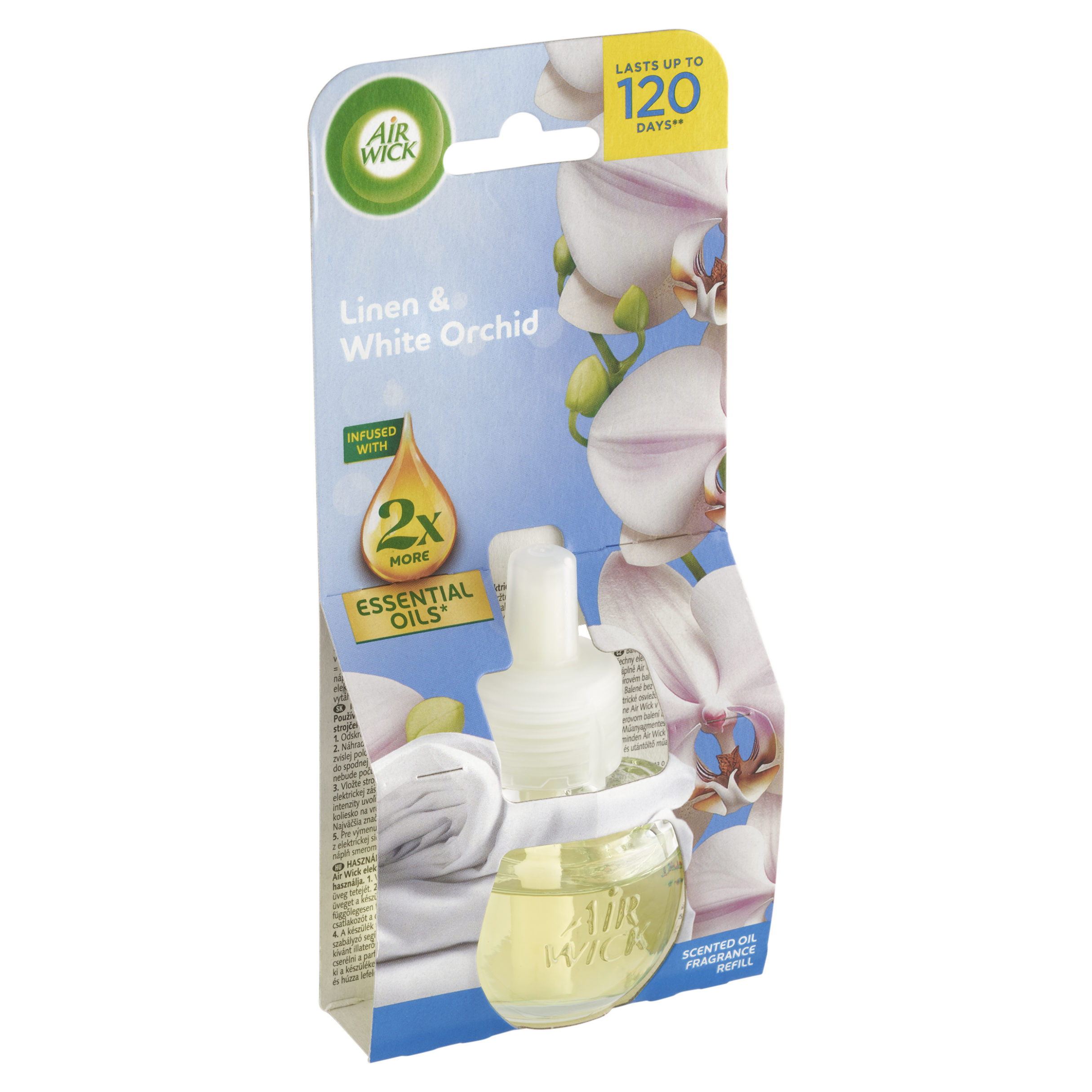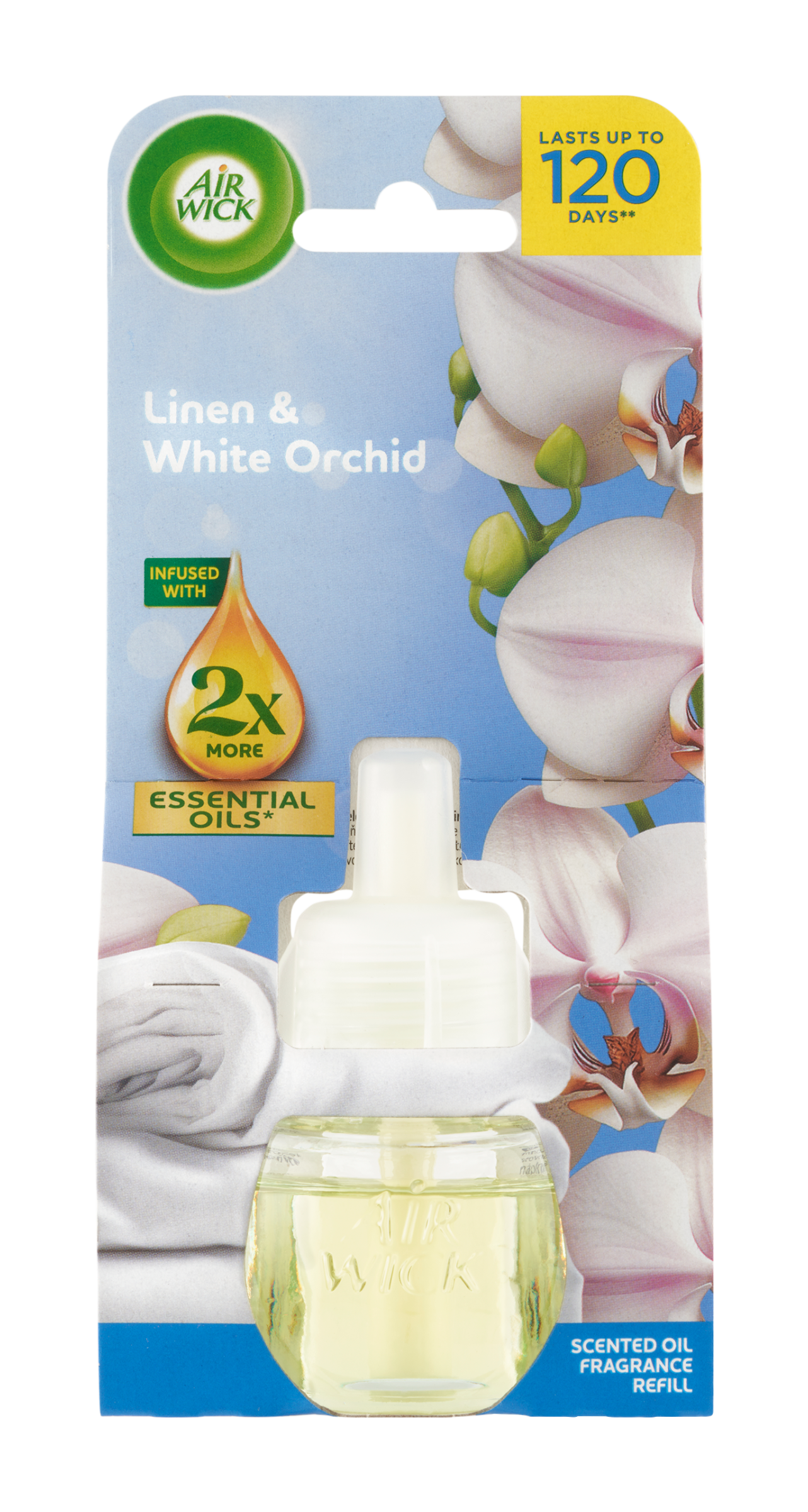 Vůně je obohacena o dvojnásobné množství přírodních esenciálních olejů ve srovnání s předchozím složením Air Wick náplně do elektrického přístroje. Vydrží až 120 dní při používání 12 hodin denně na nejnižší úrovni intenzity vůně.