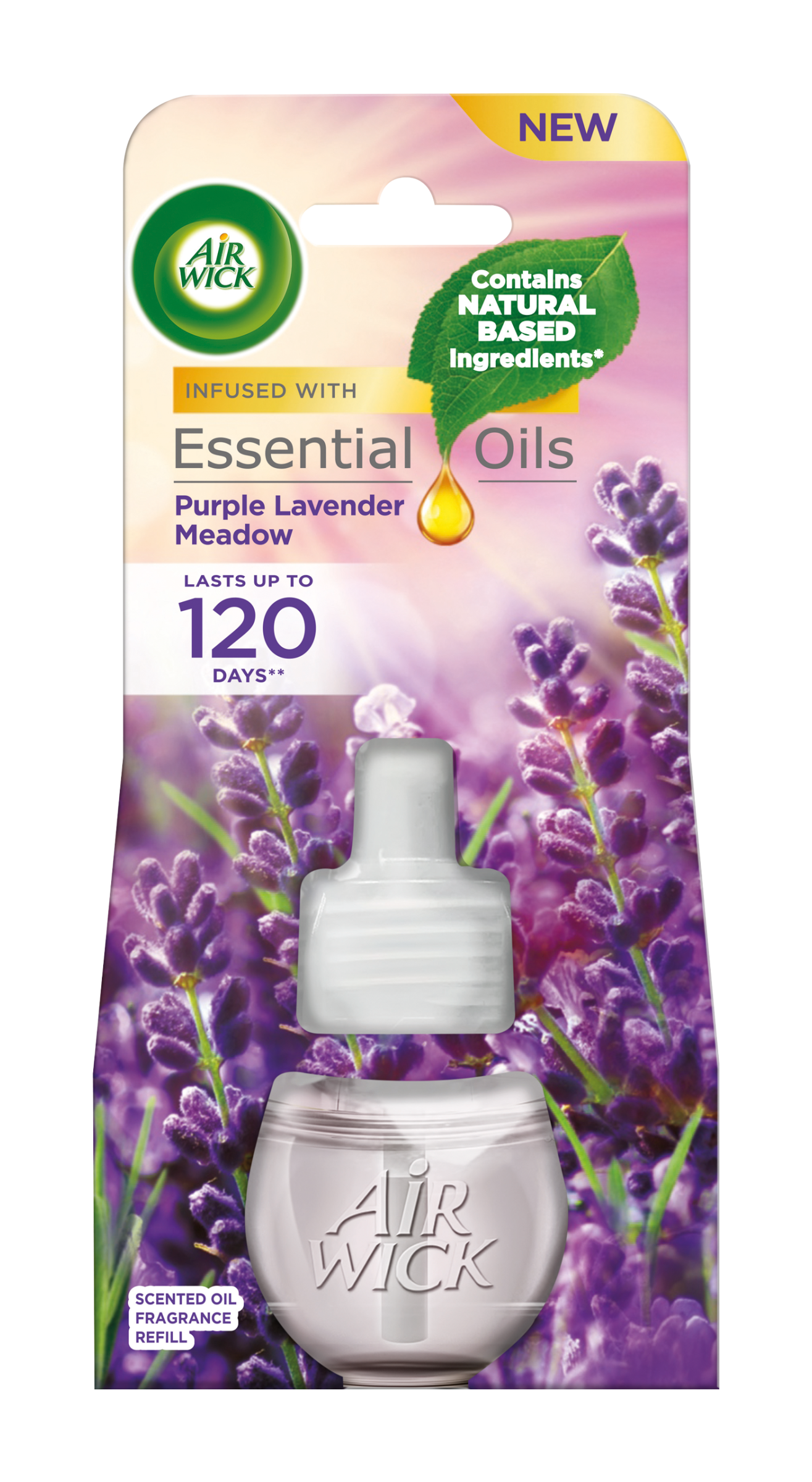 Nové složení s vonnými oleji obsahuje složky na přírodní bázi* a je obohaceno o přírodní esenciální oleje, které byly vytvořeny tak, aby vám přinesly autentický zážitek z vůně. Zklidněte své smysly jemnou vůní levandule a bergamotu doplněnou hřejivými tóny heřmánku a sladké vanilky. Provoňte svůj domov vůněmi inspirovanými přírodou a vytvořte si hřejivou a příjemnou atmosféru. Baleno bez plastů. Nově jsou všechna balení Air Wick Scented Oils v ekologickém papírovém balení bez plastu. *Formule obsahuje nejméně 50% složek přírodního původu¹. ¹Přírodní složky si po zpracování uchovávají 50% svého přirozeného stavu. Až 120 dní vůně** ** Při používání 12 hodin denně při nejnižší úrovni intenzity parfému.
