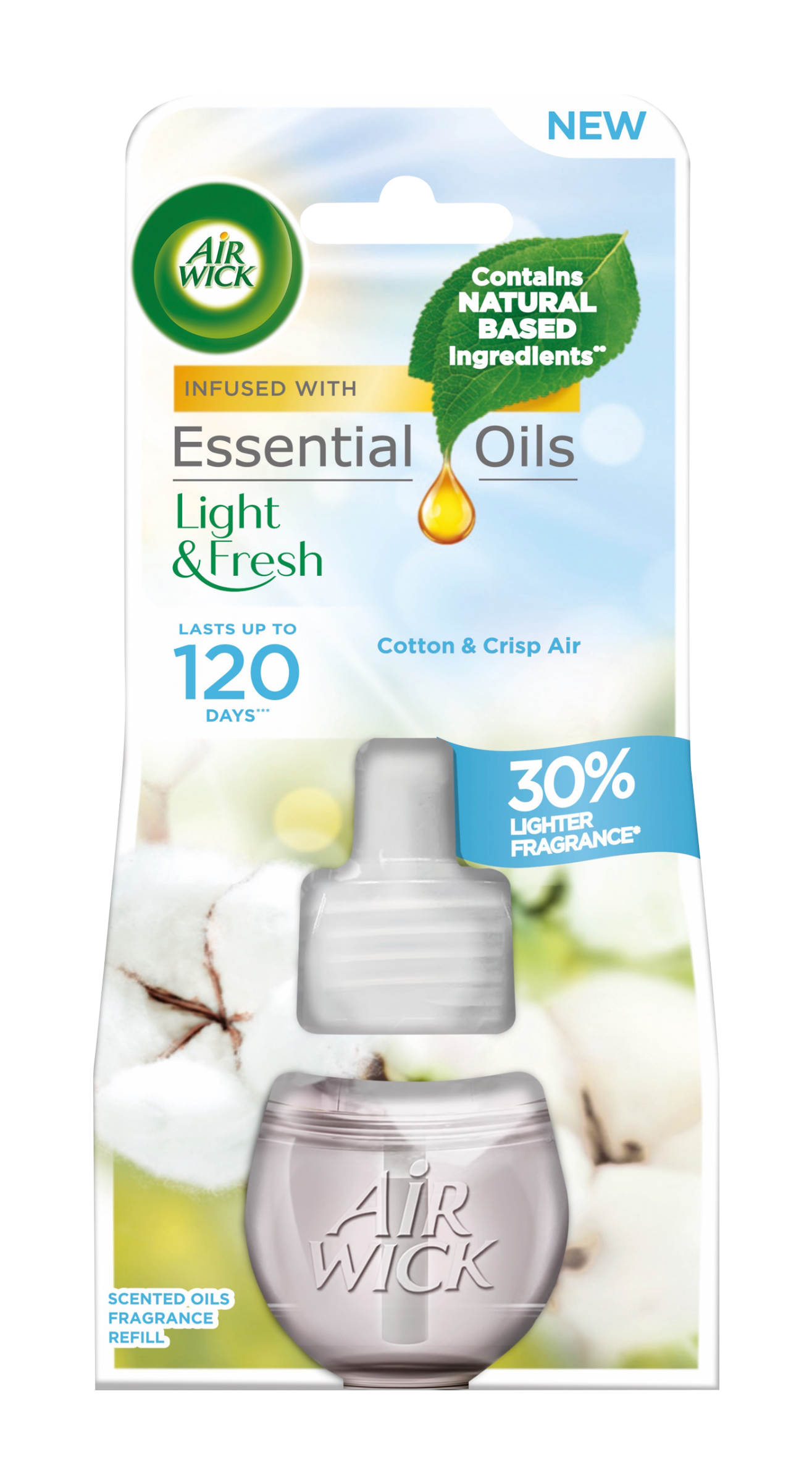 Vůně je min. o 30 % jemnější než standardní vůně do elektrického osvěžovače vzduchu Air Wick. Složení obsahuje nejméně 50 % složek přírodního původu. Přírodní složky si po zpracování uchovávají 50 % svého přirozeného stavu. Při používání 12 hodin denně na nejnižší úrovni intenzity vůně.