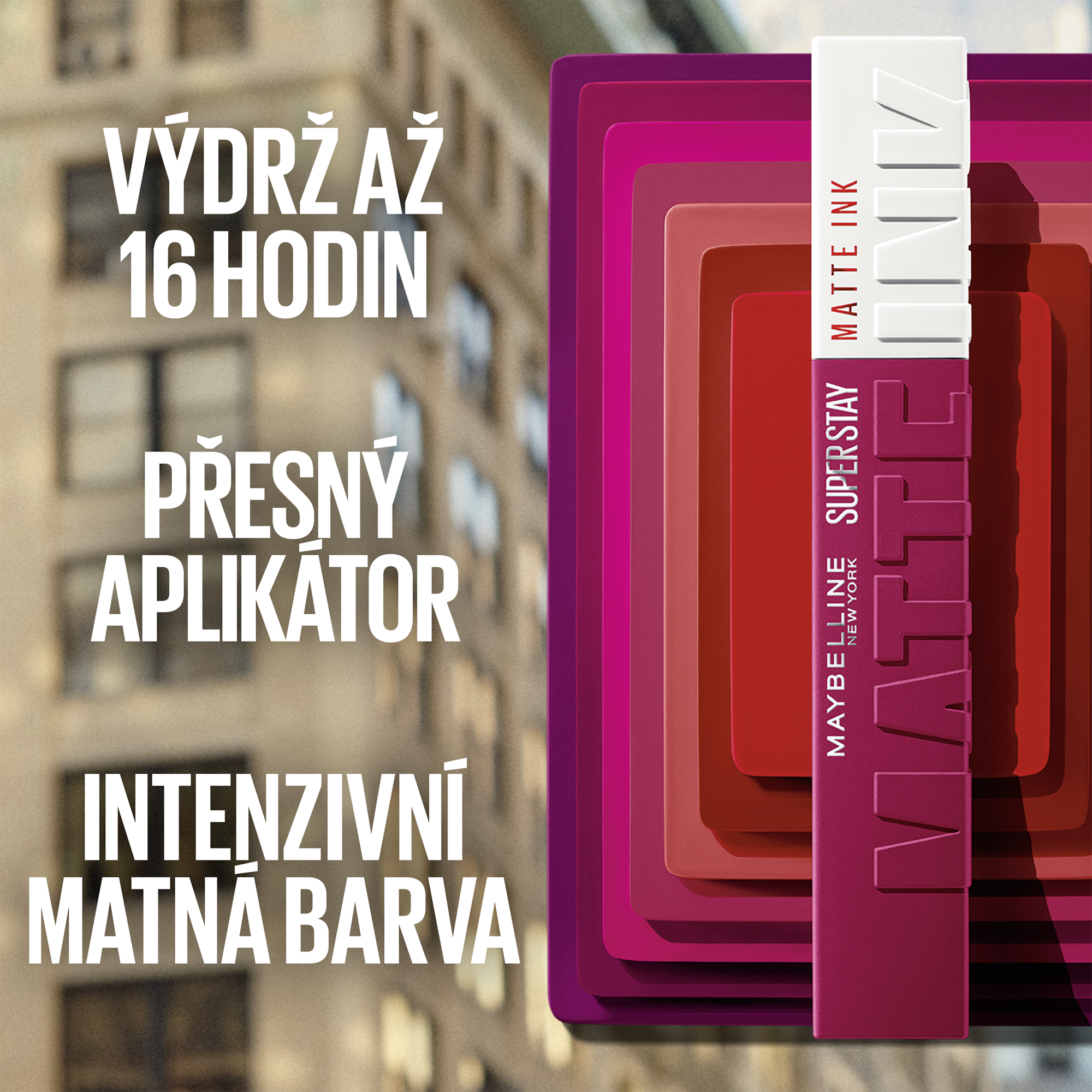 Propůjčte svým rtům skutečně intenzivní barvu na celých 16 hodin! Matná tekutá rtěnka Maybelline SuperStay Matte Ink™ zbarví vaše rty sytým odstínem se sametově matným finišem. Výrazná a dlouhotrvající rtěnka Maybelline Matte Ink je součástí City Edition a inspirovaná městem New York a jeho stylem, který se neomrzí. Tuhle rtěnku zkrátka nelze nemilovat!