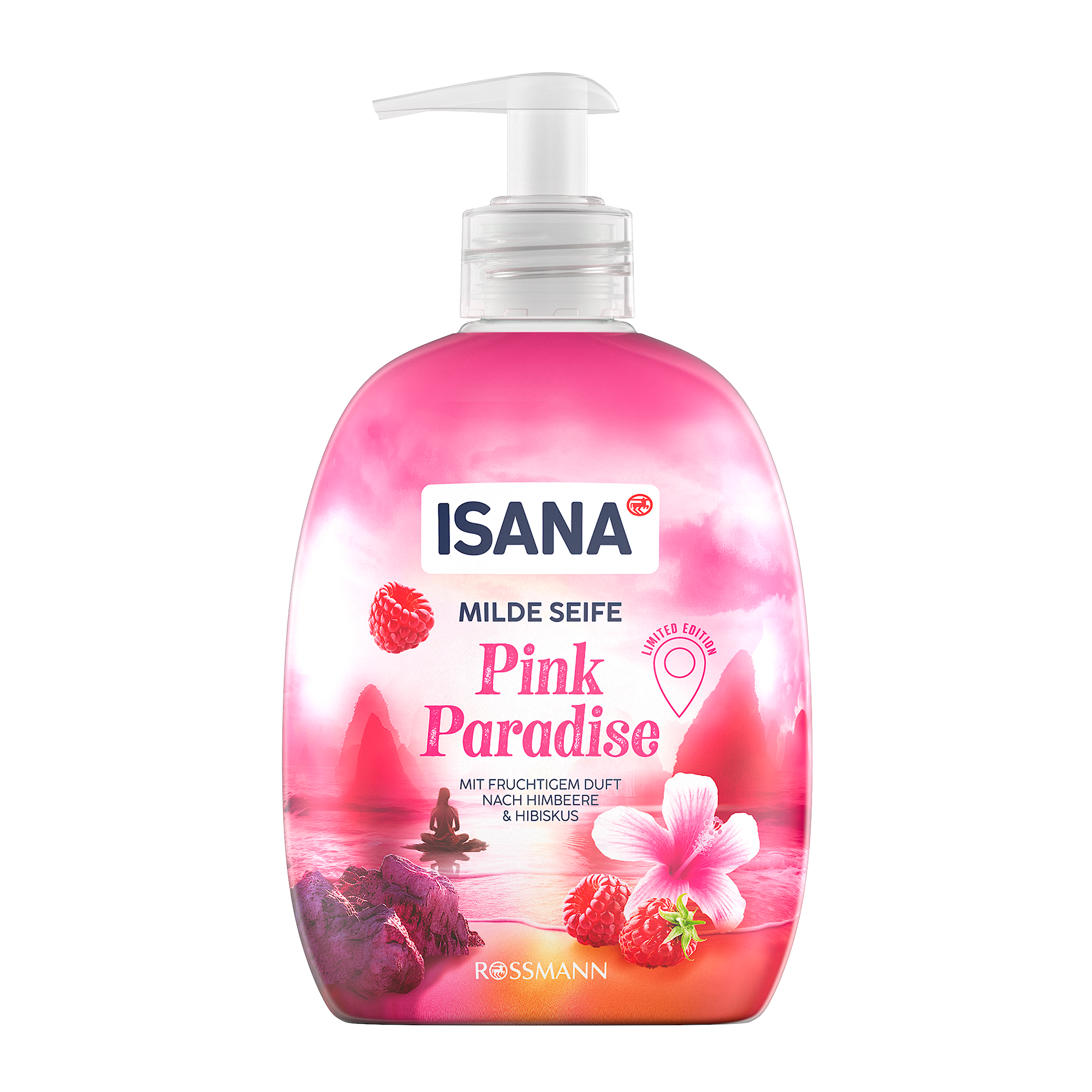 Tekuté mýdlo Pink Paradise Isana promění každodenní mytí rukou v příjemný zážitek díky lahodné vůni malin a květů ibišku. Obohacená receptura příjemně osvěžuje, účinně odstraňuje nečistoty a podporuje každodenní péči o ruce.